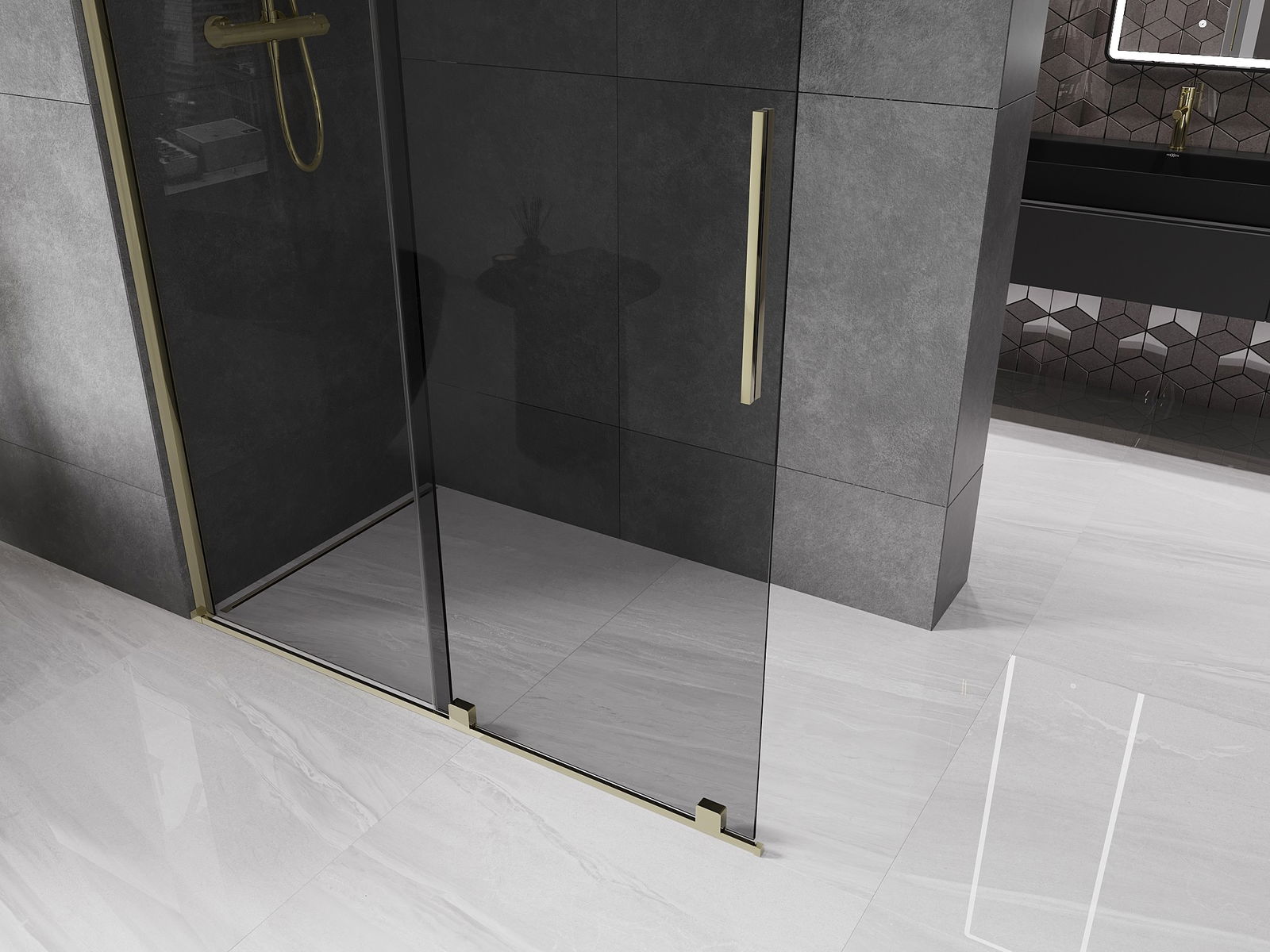 Mexen Velar stumdomoji dušo siena Walk-in 150 x 200 cm, grafitas 8 mm, auksinė - 871-150-000-43-50