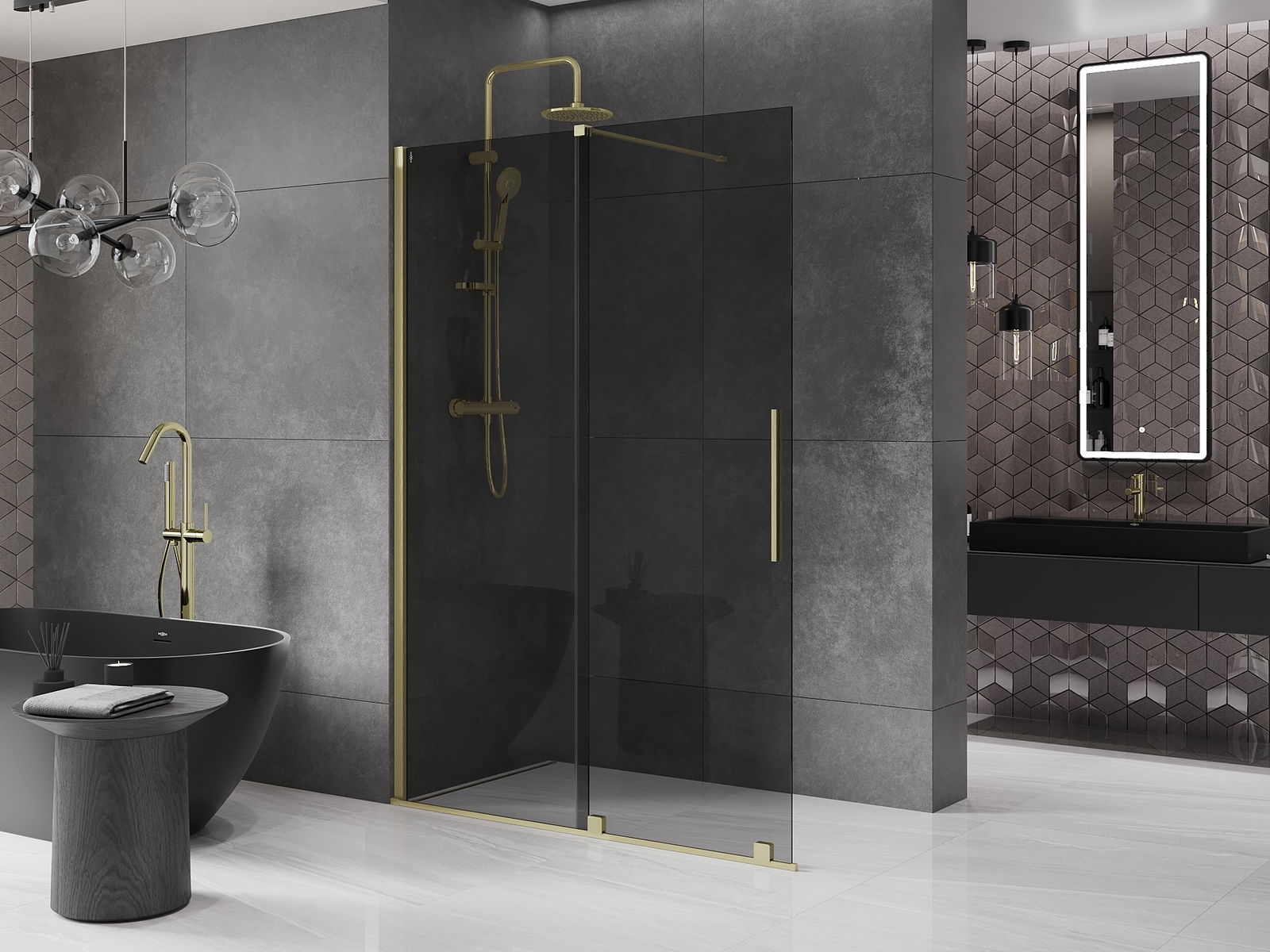 Mexen Velar stumdomos dušo sienelės Walk-in 160 x 200 cm, grafitas 8 mm, auksinė šlifuota - 871-160-000-43-55