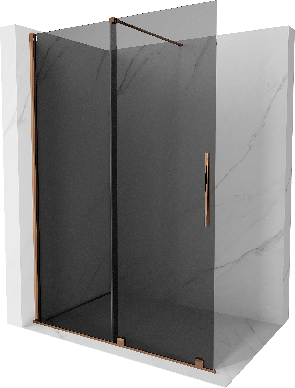 Mexen Velar stumdomoji dušo siena Walk-in 140 x 200 cm, grafitas 8 mm, rožinis auksas - 871-140-000-43-60
