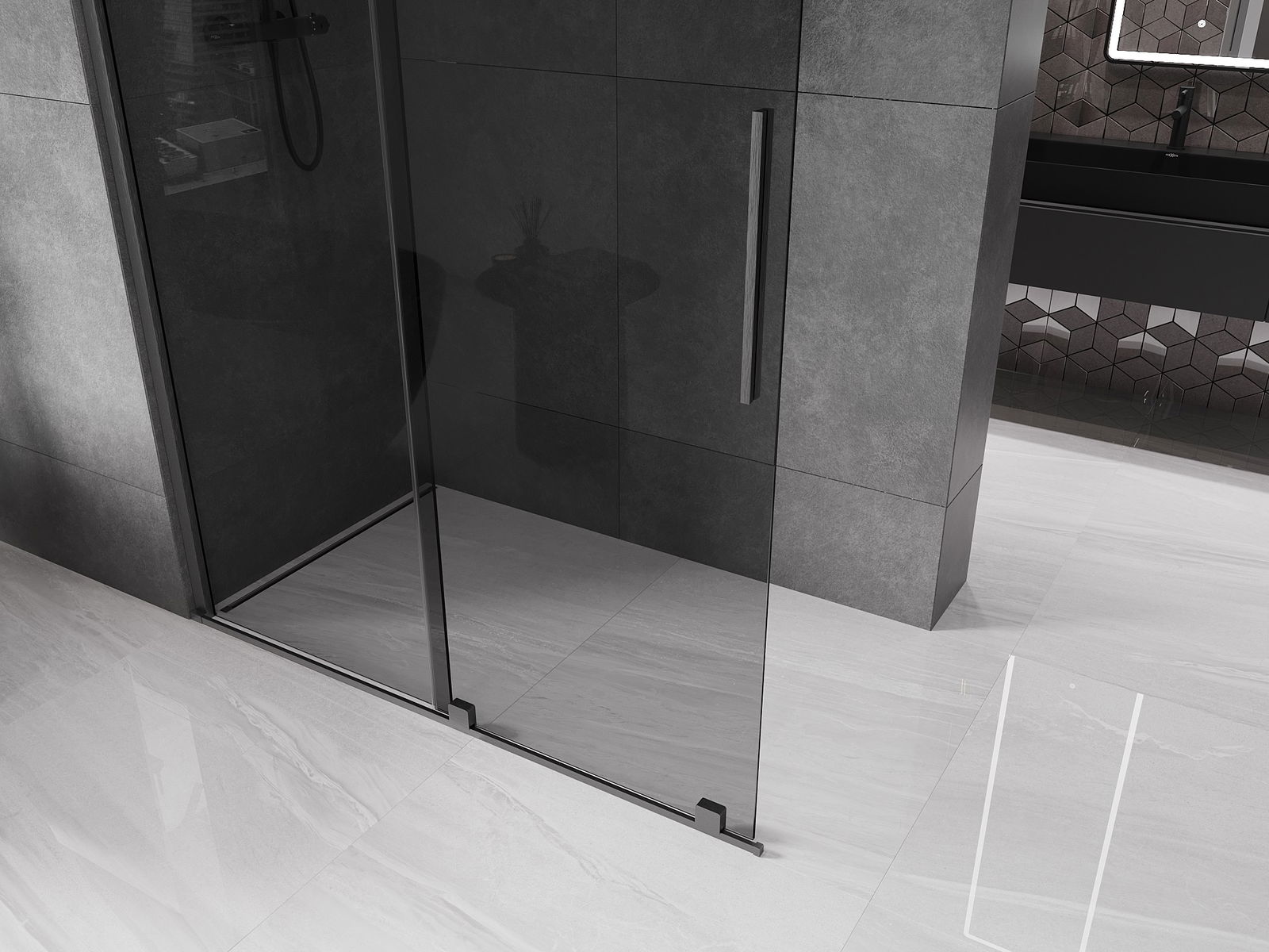 Mexen Velar slankiojanti dušo siena Walk-in 140 x 200 cm, grafitas 8 mm, šepetėliu valytas gun gray - 871-140-000-43-66