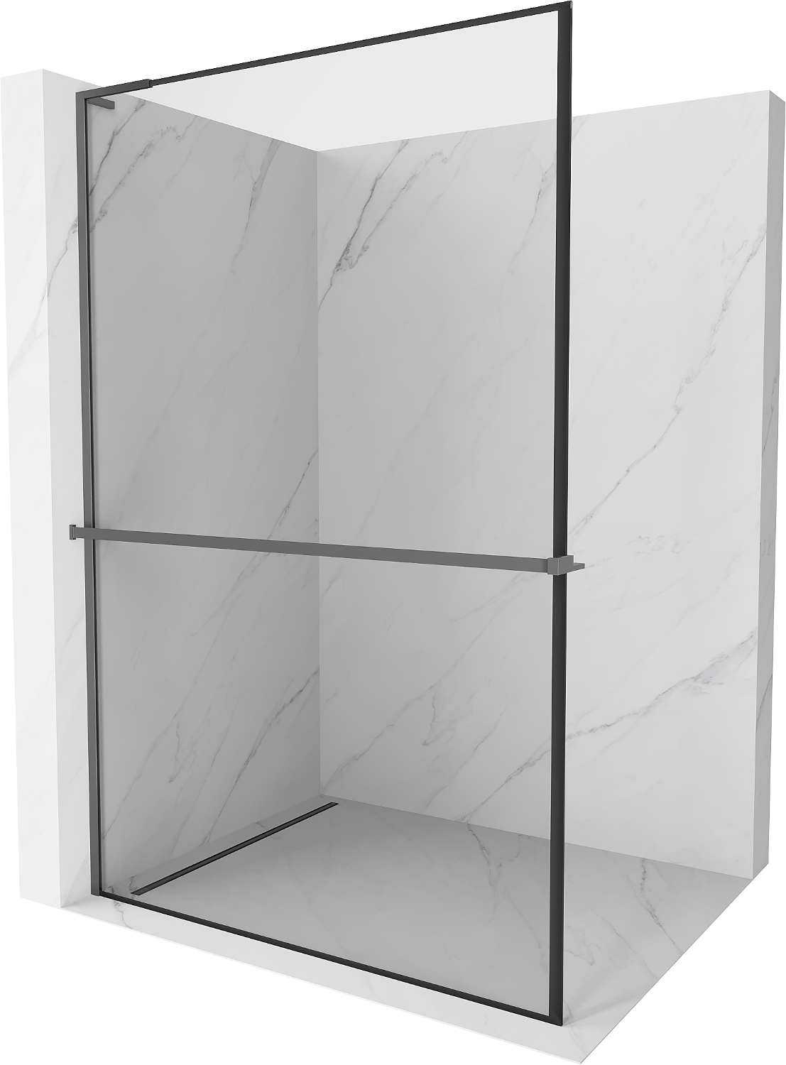 Mexen Kioto+ L dušo sienelė su lentynėle Walk-in 120 x 200 cm, juodas rėmelis, gun metalas - 800-120-123-95-70