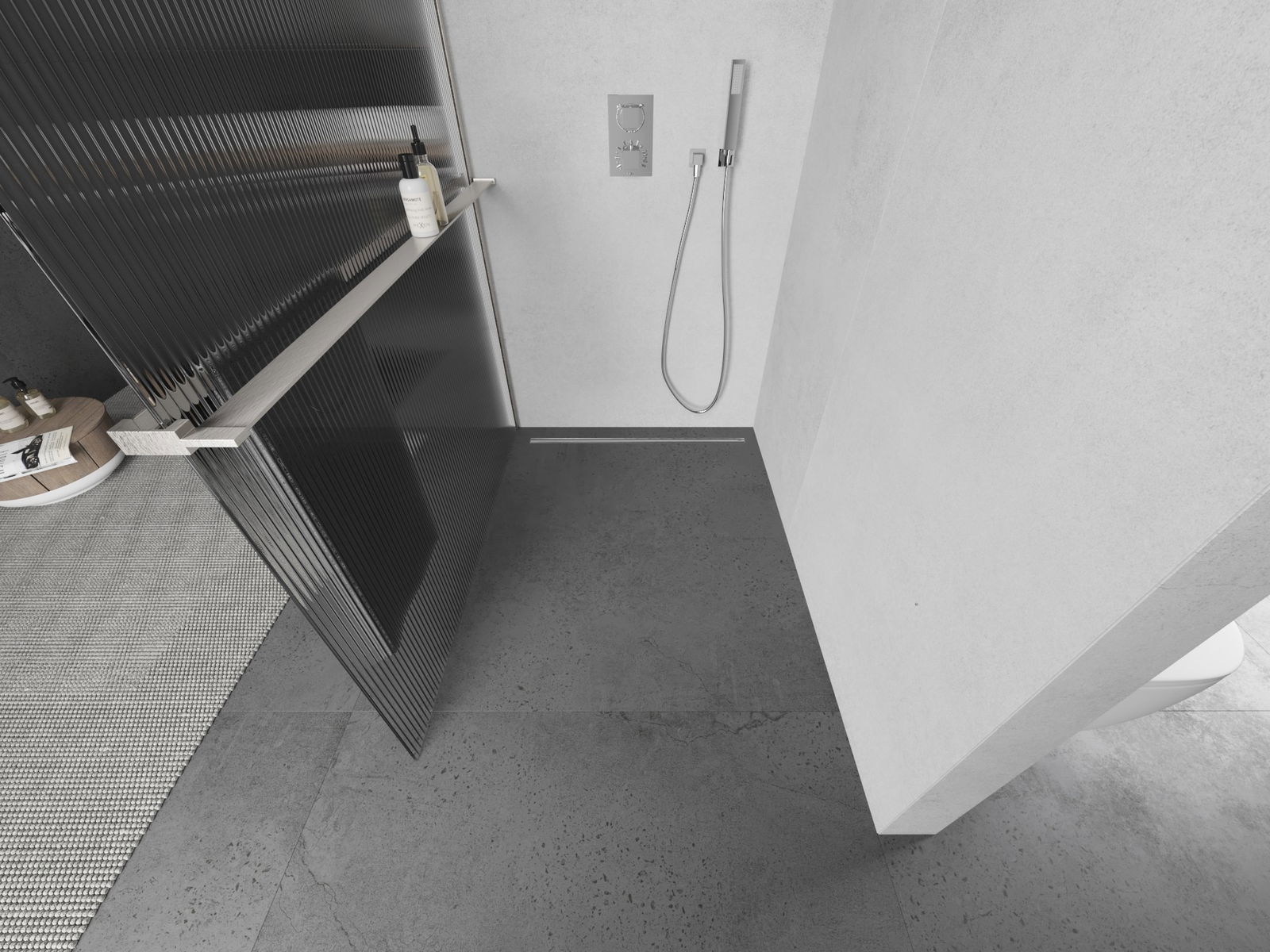 Mexen Kioto+ L dušo sienelė su lentyna Walk-in 90 x 200 cm, juostelės, šlifuotas nikelis - 800-090-123-97-09