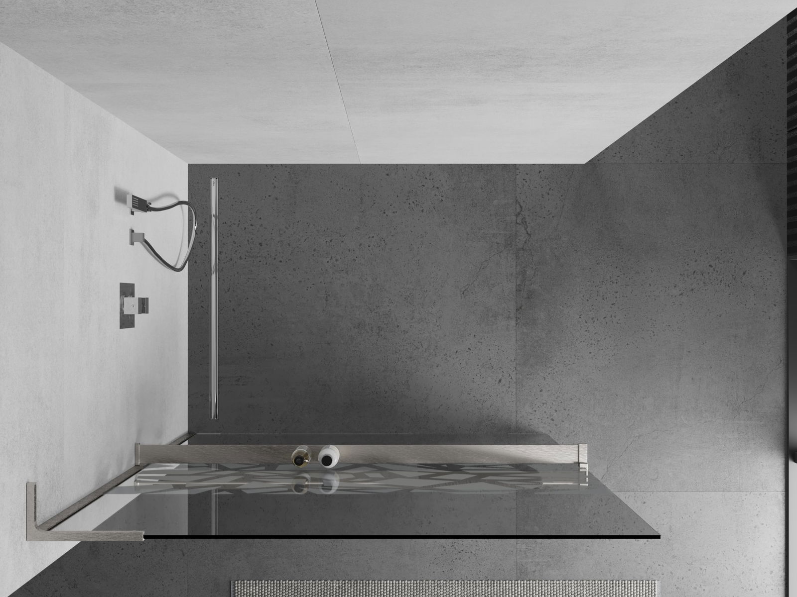 Mexen Kioto+ L dušo sienelė su lentyna Walk-in 70 x 200 cm, baltas raštas, šlifuotas nikelis - 800-070-123-97-85