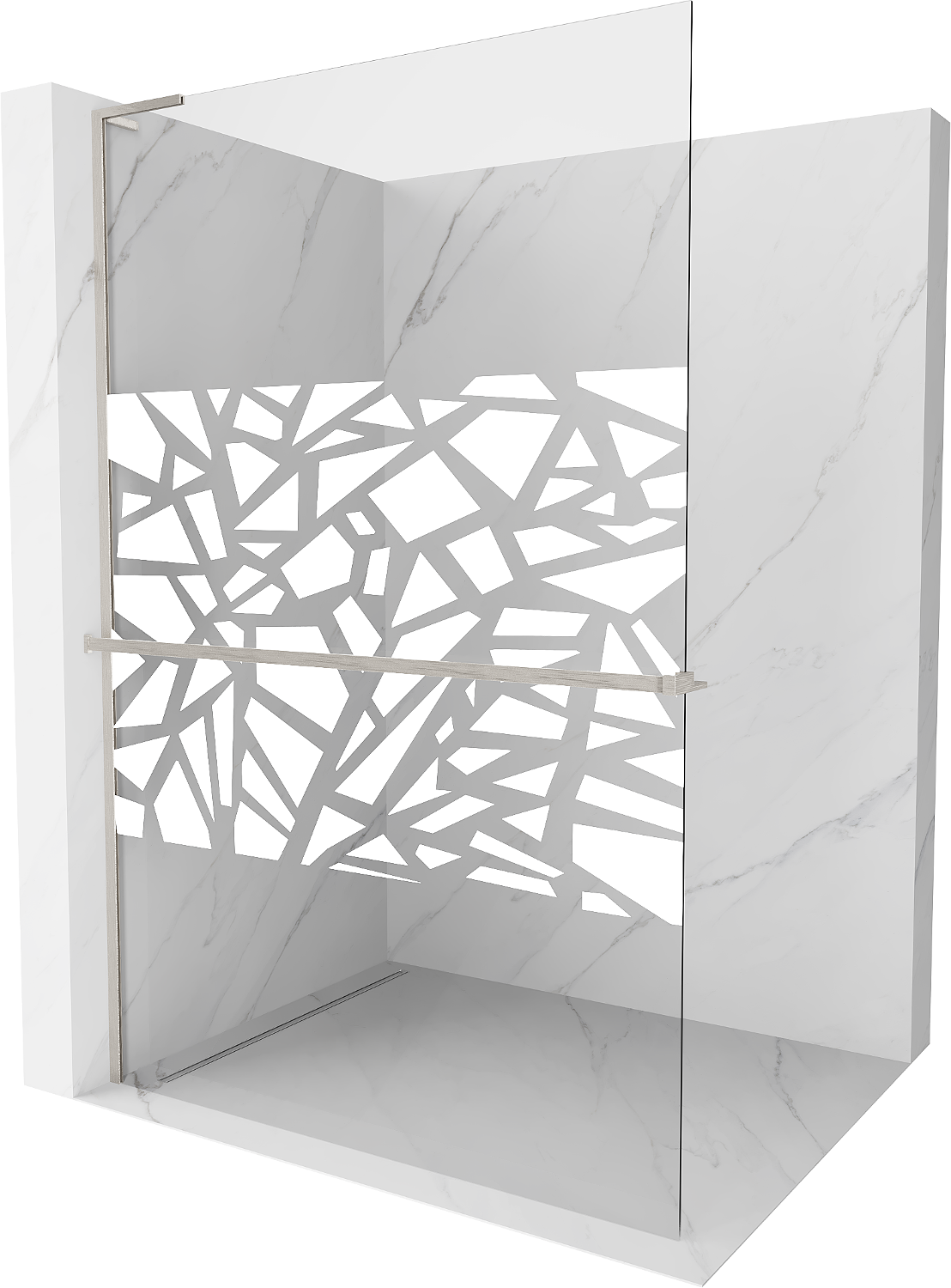 Mexen Kioto+ L dušo sienelė su lentynėle Walk-in 120 x 200 cm, baltas raštas, šlifuotas nikelis - 800-120-123-97-85