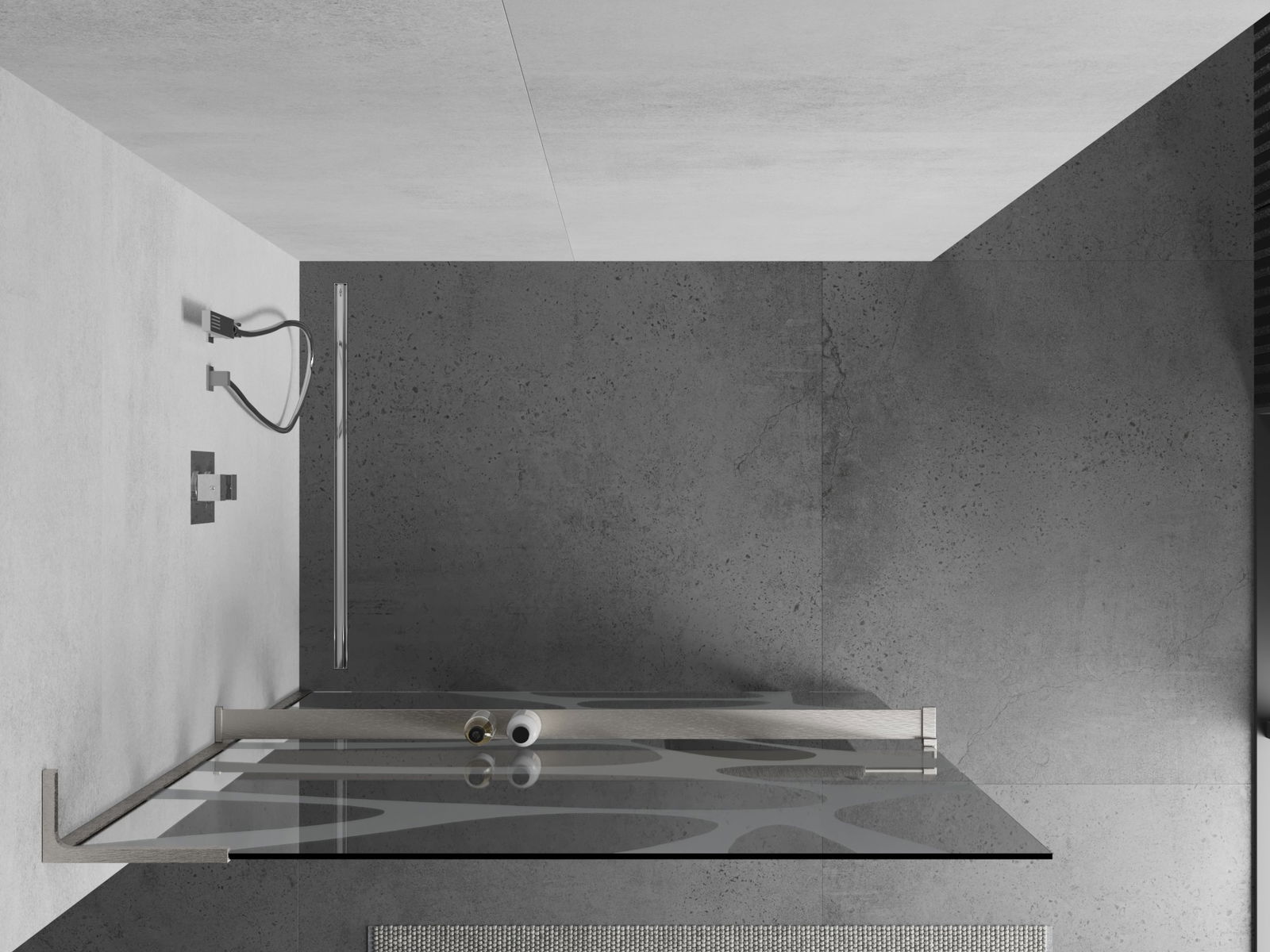 Mexen Kioto+ L dušo siena su lentyna Walk-in 120 x 200 cm, balta banga, šlifuotas nikelis - 800-120-123-97-97