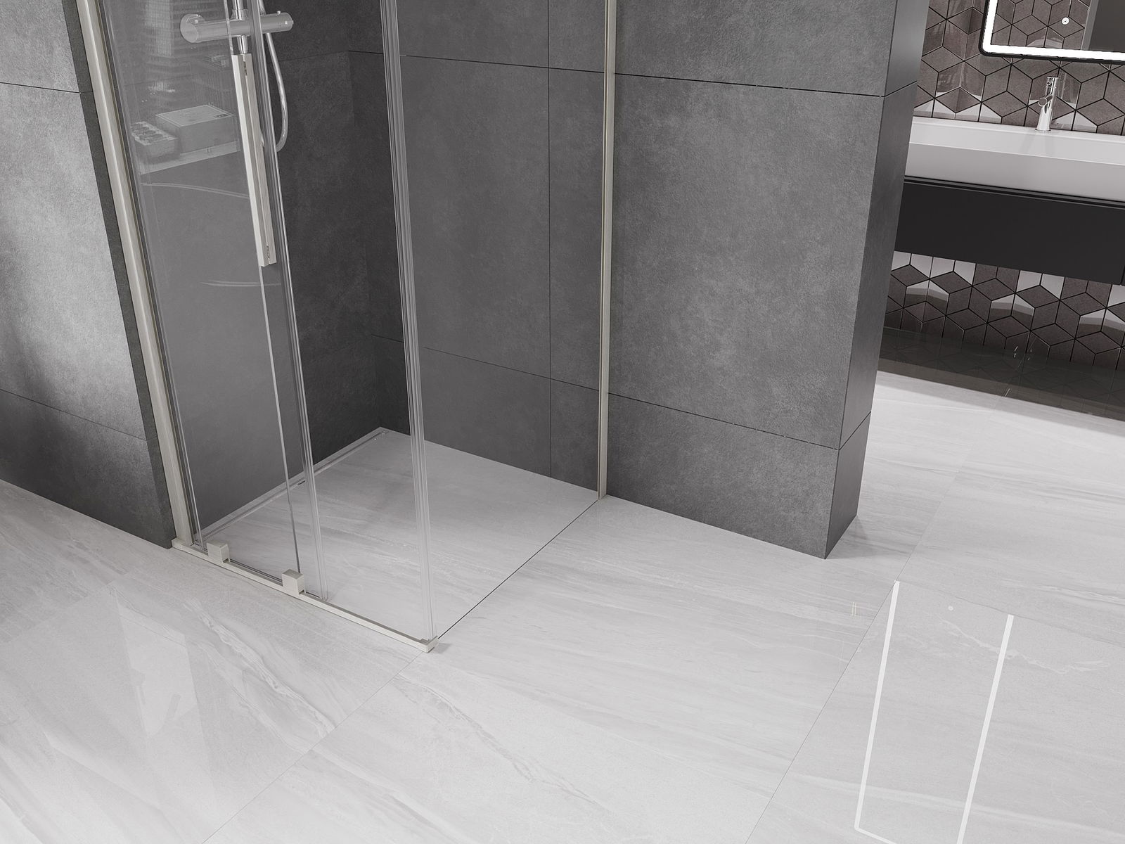 Produktą, atsižvelgiant į poreikius, galima sumontuoti tiek ant dušo padėklo, tiek tiesiogiai ant grindų. Universalus montavimo būdas leidžia pritaikyti produktą įvairių tipų vonios kambariams ir erdvės konfigūracijoms.