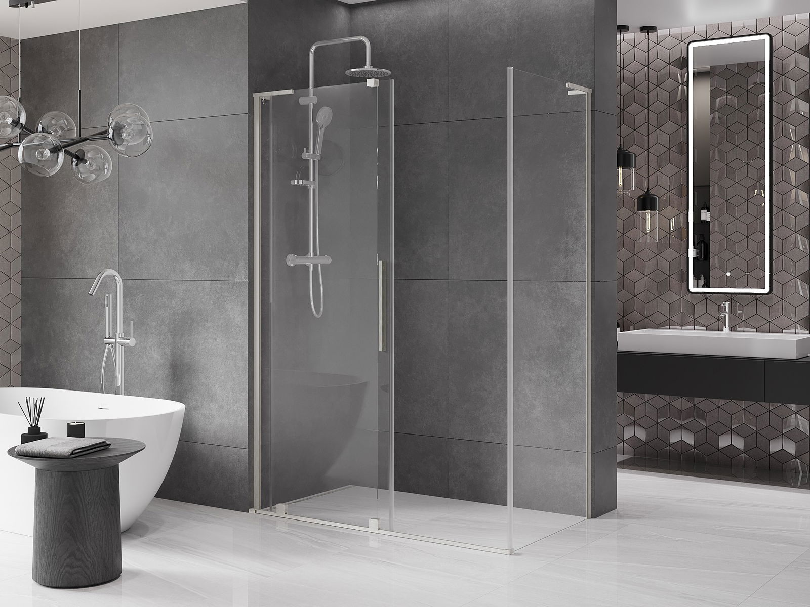 Mexen Velar stumdoma dušo kabina 140 x 70 cm, permatomi, šlifuotas nikelis - 871-140-070-01-97