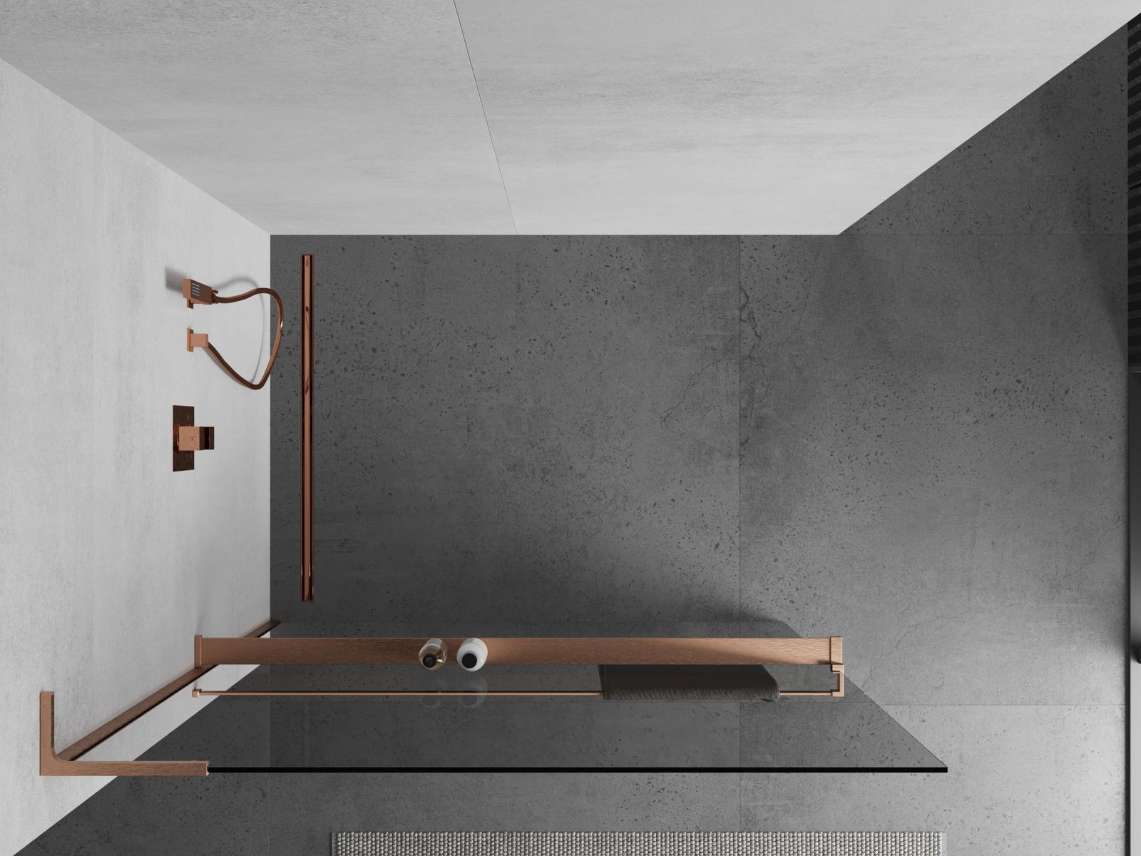 Mexen Kioto+ L dušo sienelė su lentyna „Walk-in“ 120 x 200 cm, permatoma, šlifuotas varis - 800-120-123-65-00
