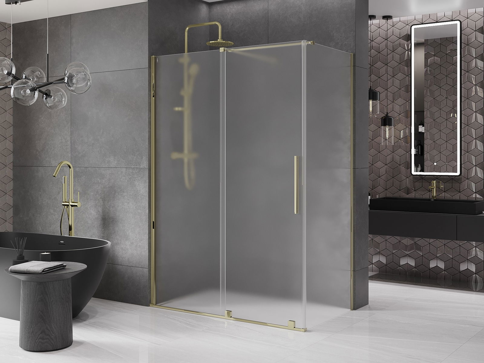 Mexen Velar stumdoma dušo kabina 140 x 80 cm, matinė, auksinė - 871-140-080-31-50