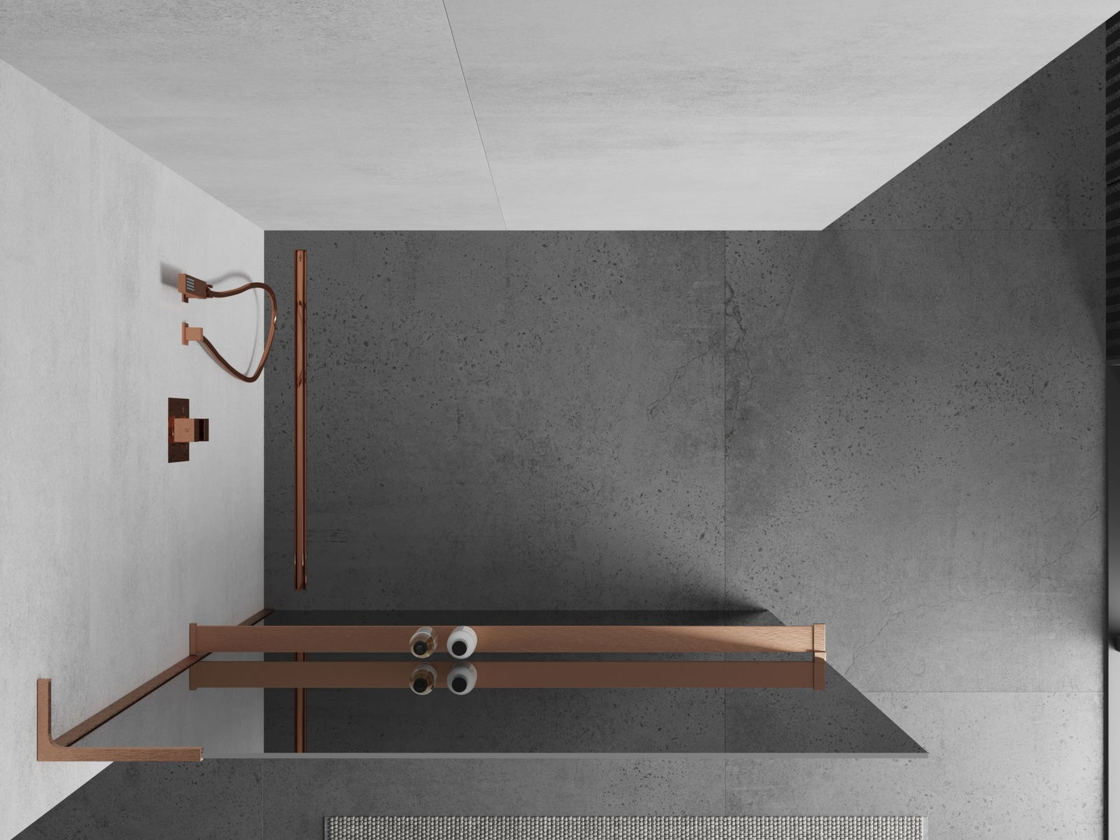Mexen Kioto+ L dušo sienelė su lentyna Walk-in 90 x 200 cm, veidrodis, šlifuota varis - 800-090-123-65-50