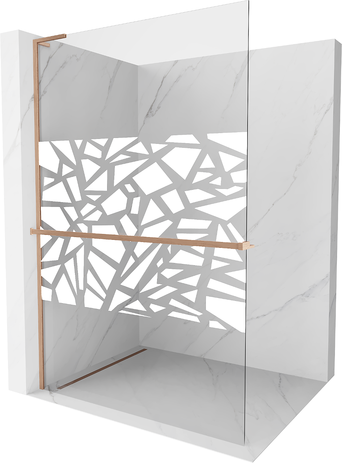 Mexen Kioto+ L dušo sienelė su lentyna Walk-in 110 x 200 cm, baltas raštas, šlifuotas varis - 800-110-123-65-85