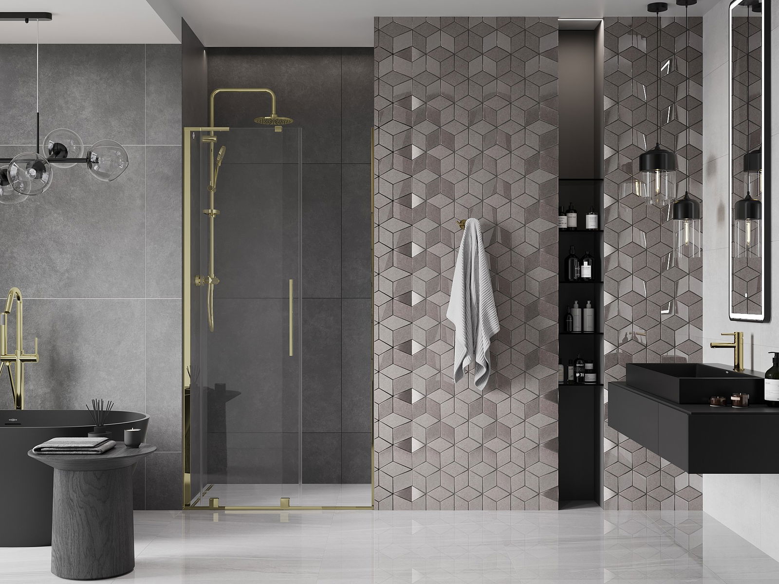 Mexen Velar L stumdomos dušo durys 100 cm, permatomos, auksinės - 871-100-003-01-50