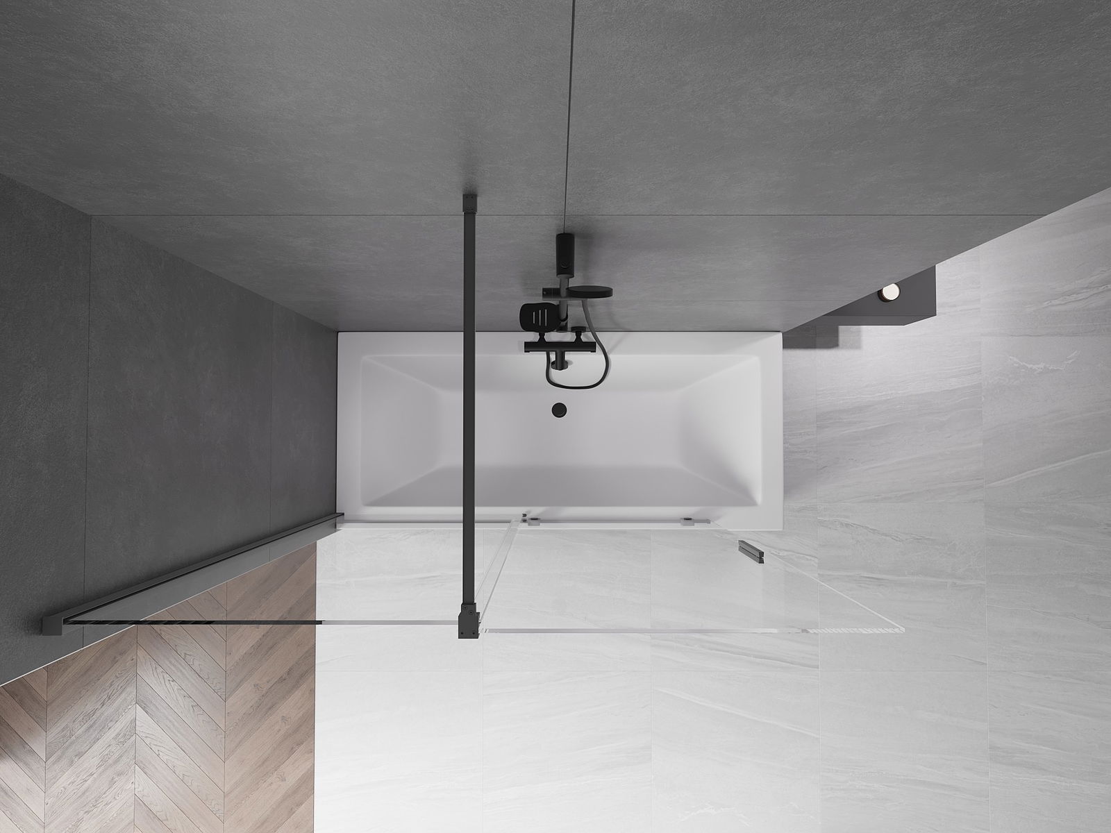 Efektyvi apsauga nuo vandens išsiliejimo maudymosi metu. Sienelė turi tarpines, kurios idealiai priglunda prie stiklo paviršiaus ir vonios krašto. Funkcionalus sprendimas, užtikrinantis saugumą ir lengvą švaros palaikymą.