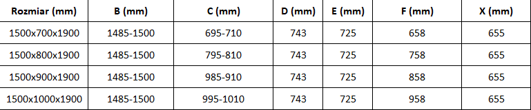 Dušo kabinos, durys ir sienelės yra standartiškai pritaikytos montuoti ant nustatytų matmenų dušo padėklų. Būtent šie matmenys nurodomi gaminio pavadinime arba aprašyme. Tačiau atkreipkite dėmesį, kad faktiniai elementų matmenys gali šiek tiek skirtis nuo vardinių verčių. Planuojant montuoti tiesiai ant grindų, rekomenduojama atidžiai patikrinti išorinius matmenis ir elementų išdėstymą pagal techninį brėžinį.