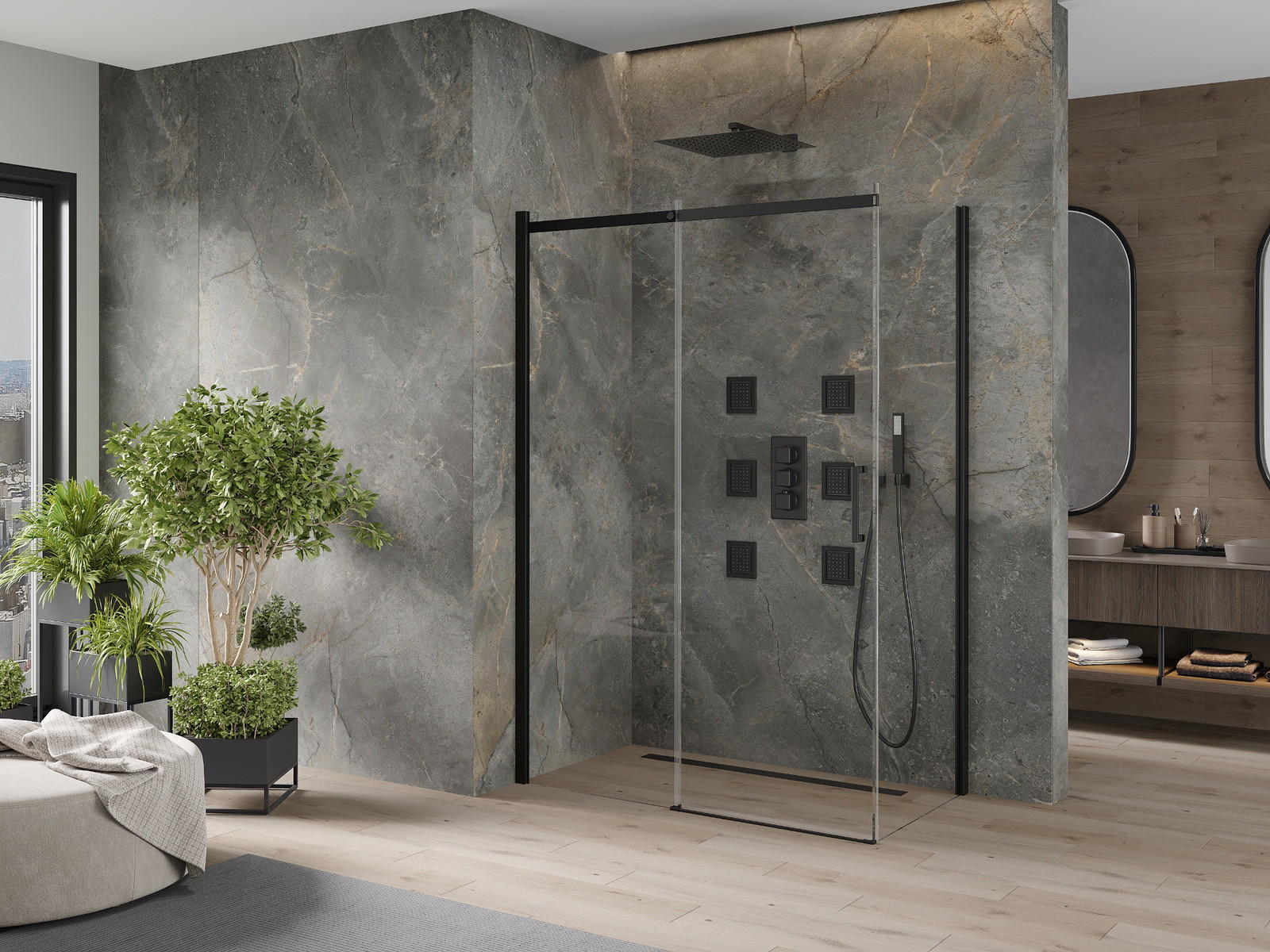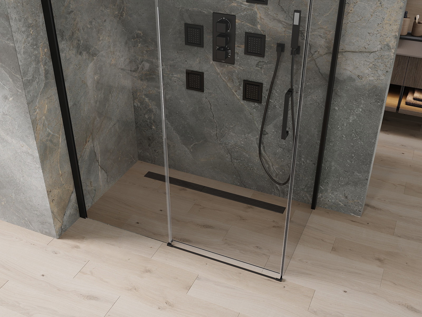 Produktą, atsižvelgiant į poreikius, galima sumontuoti tiek ant dušo padėklo, tiek tiesiogiai ant grindų. Universalus montavimo būdas leidžia pritaikyti produktą įvairių tipų vonios kambariams ir erdvės konfigūracijoms.