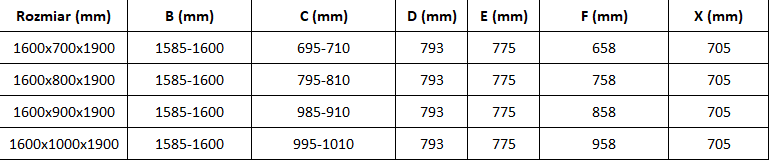 Dušo kabinos, durys ir sienelės yra standartiškai pritaikytos montuoti ant nustatytų matmenų dušo padėklų. Būtent šie matmenys nurodomi gaminio pavadinime arba aprašyme. Tačiau atkreipkite dėmesį, kad faktiniai elementų matmenys gali šiek tiek skirtis nuo vardinių verčių. Planuojant montuoti tiesiai ant grindų, rekomenduojama atidžiai patikrinti išorinius matmenis ir elementų išdėstymą pagal techninį brėžinį.