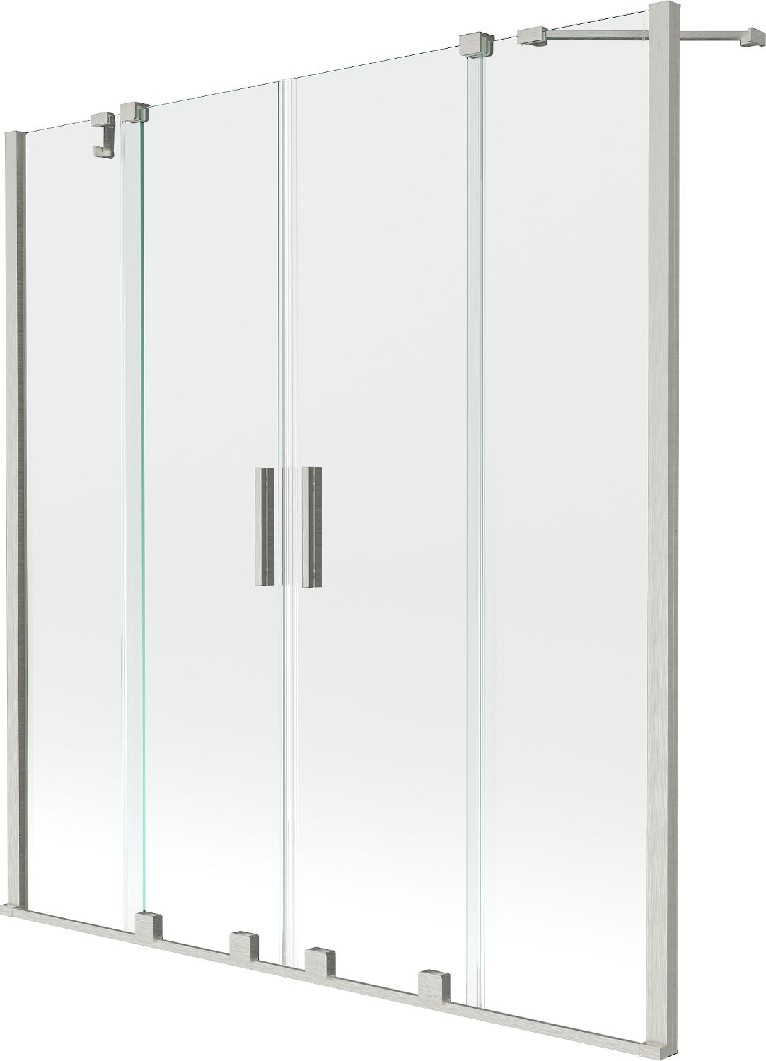 Mexen Velar Dviguba dviejų dalių stumdomoji vonios pertvara 160 x 150 cm, skaidri, šlifuotas nikelis - 896-160-000-02-97