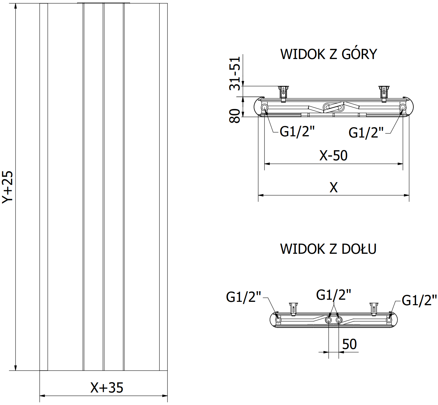 - 2xG ½″ apatinės centrinės