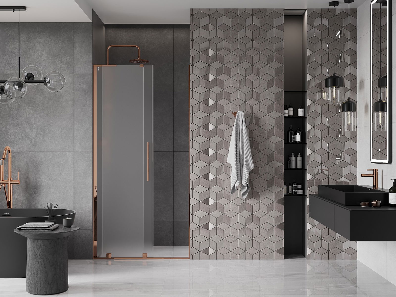 Mexen Velar L stumdomos dušo durys 100 cm, matinės, rožinio aukso - 871-100-003-31-60