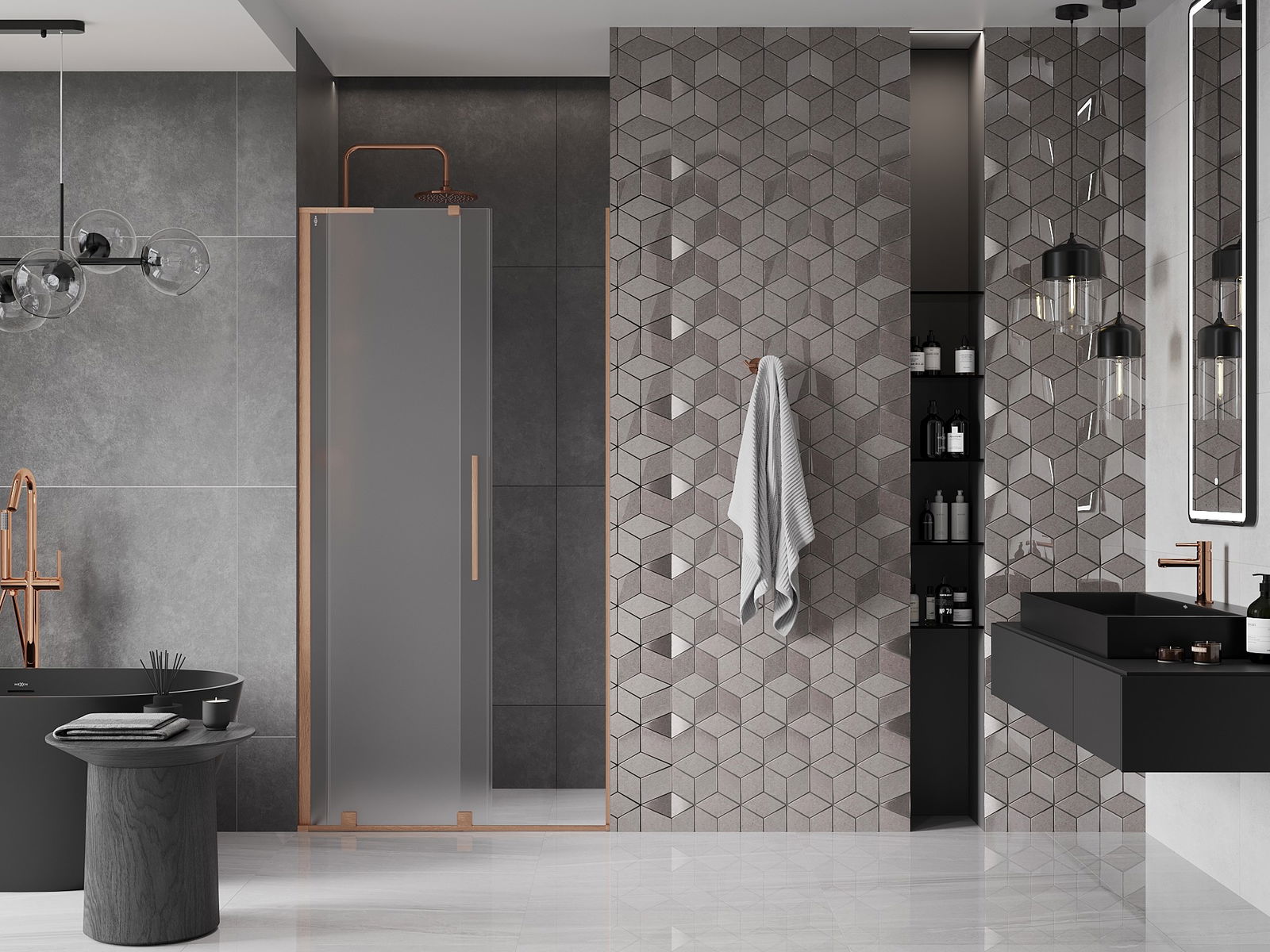 Mexen Velar L slankiosios dušo durys 100 cm, matinės, šlifuotas varis - 871-100-003-31-65