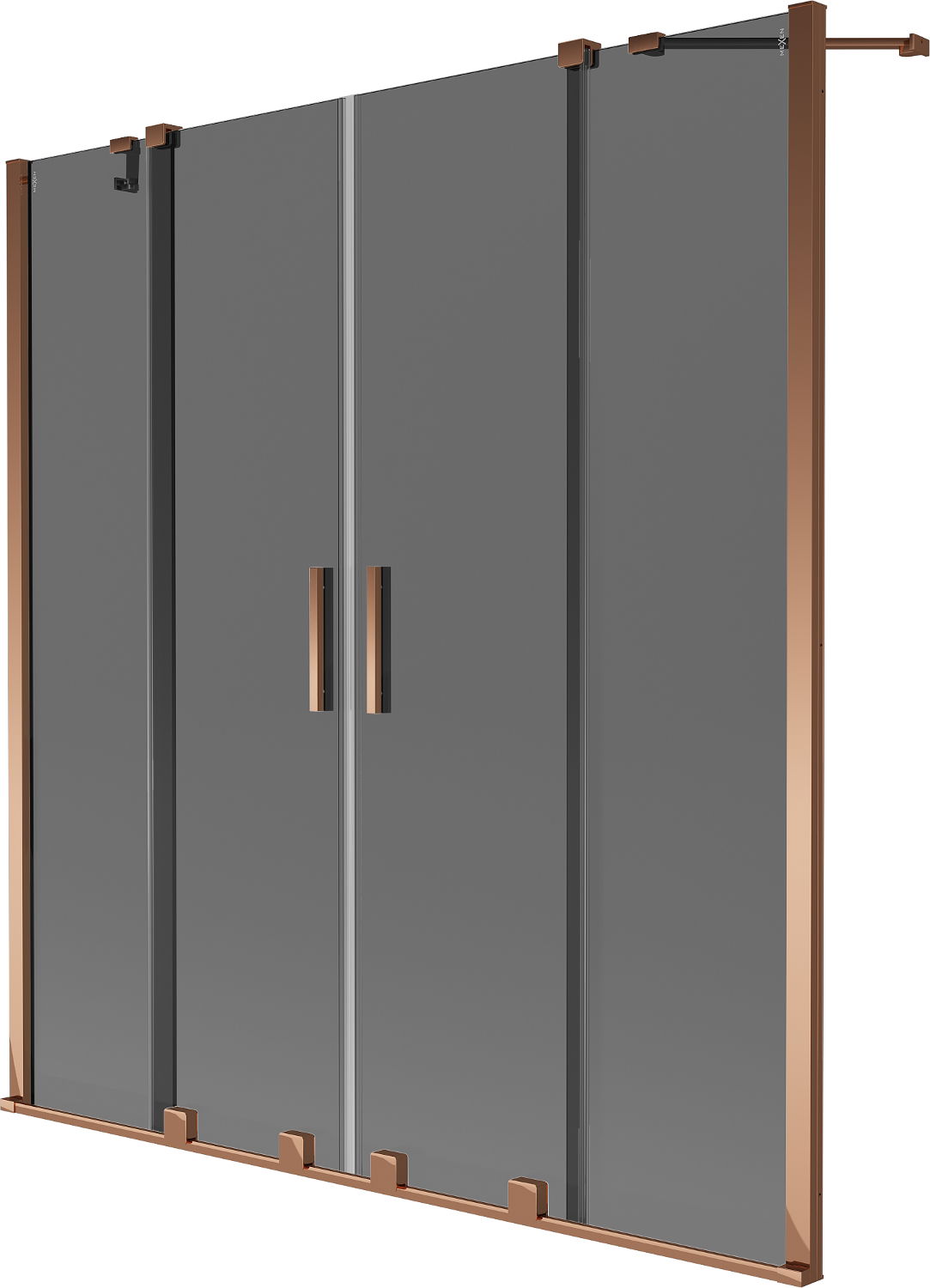 Mexen Velar Duo vonios širma, 2-jų dalių, stumdomas, 140 x 150 cm, grafitas, rožinis auksas - 896-140-000-42-60