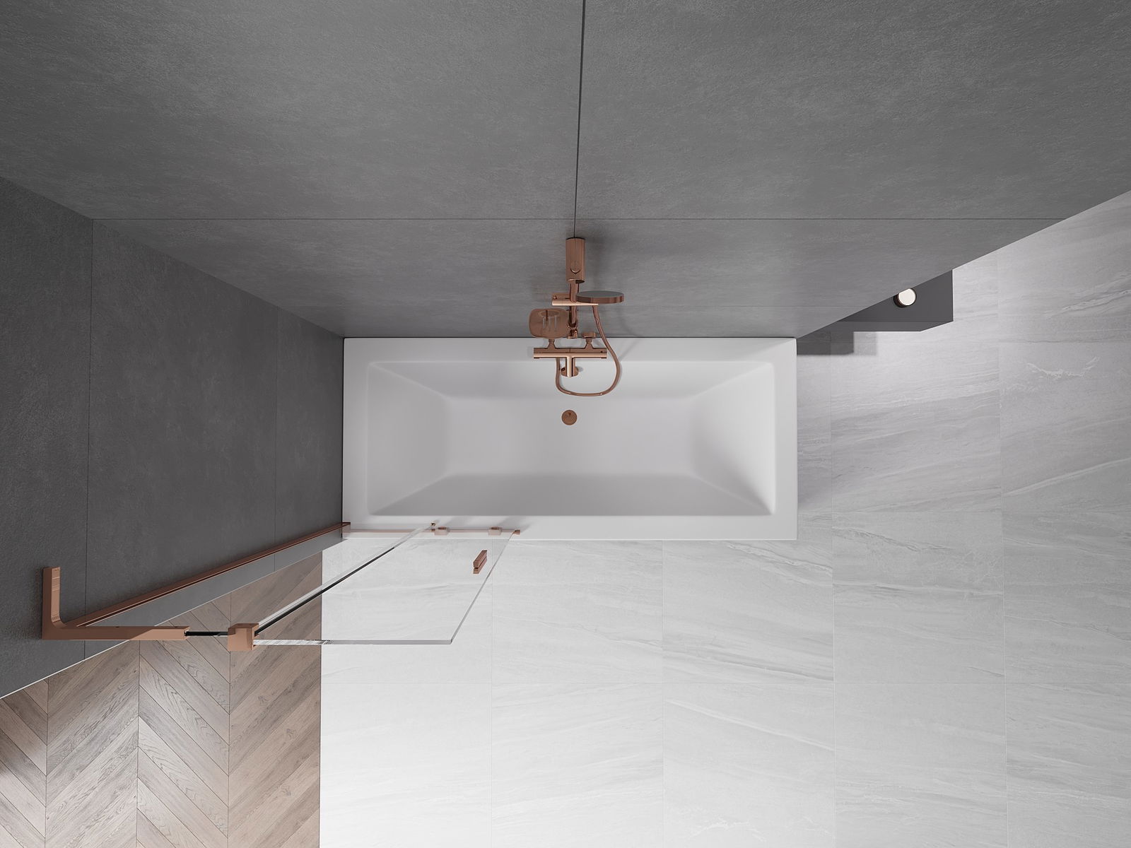 Mexen Velar L vonios širmos 2-dalių stumdomos 75 x 150 cm, permatomos, rožinis auksas - 896-075-003-01-60