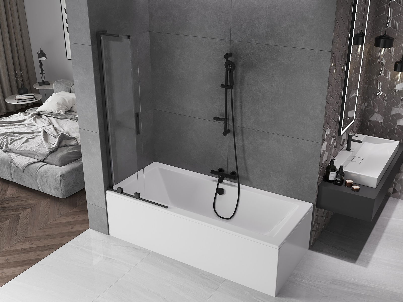 Mexen Velar L vonios ekrano durys 2-sparnių stumdomos 75 x 150 cm, permatomas, juodas - 896-075-003-01-70
