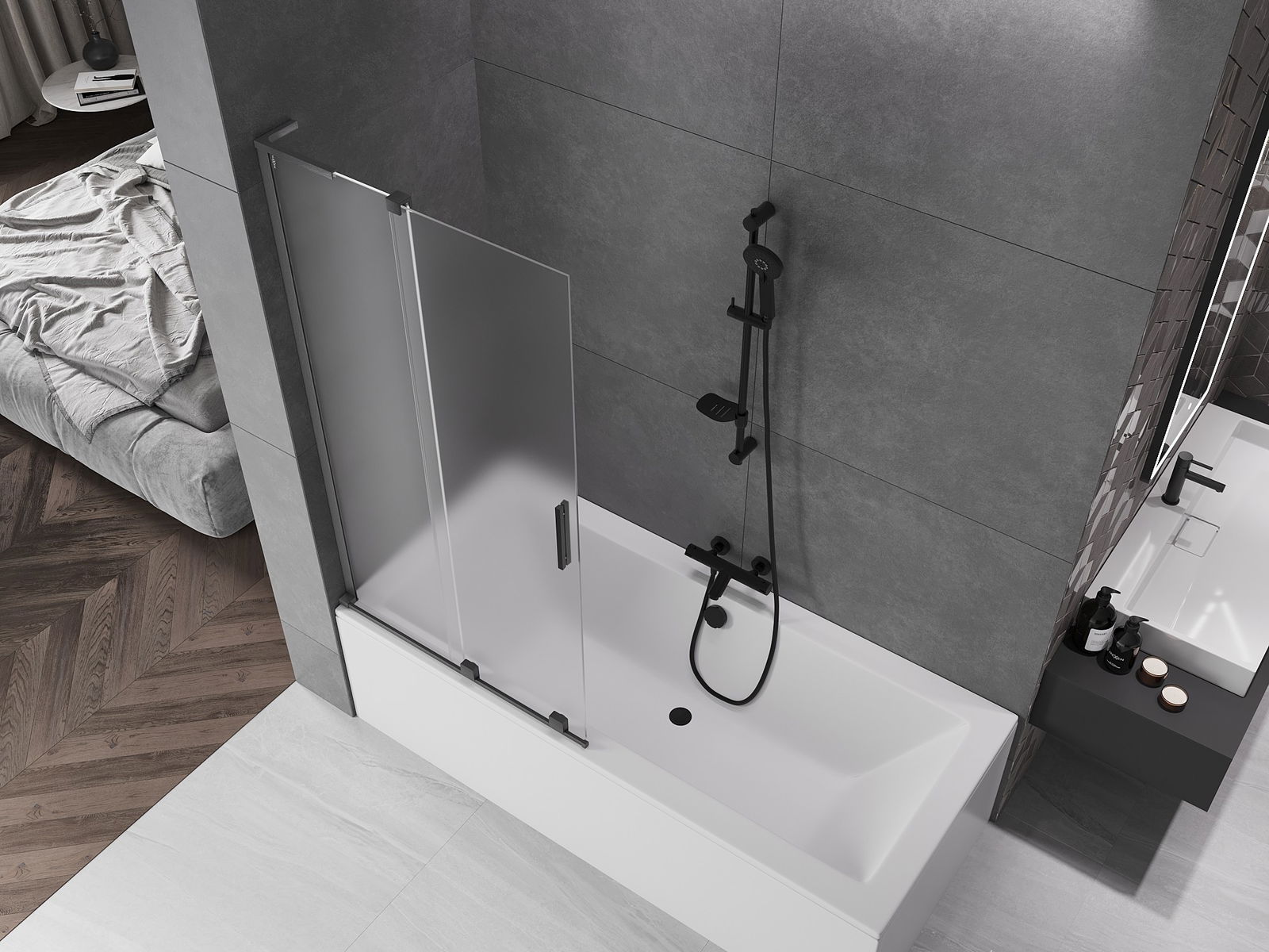 Mexen Velar L vonios pertvara, 2-jų dalių stumdomas, 95 x 150 cm, matinė, šlifuota pilka spalva - 896-095-003-31-66