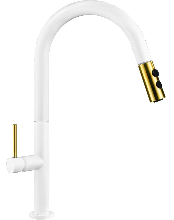 Mexen Ava virtuvinis maišytuvas, baltas/auksinis - 672800-25