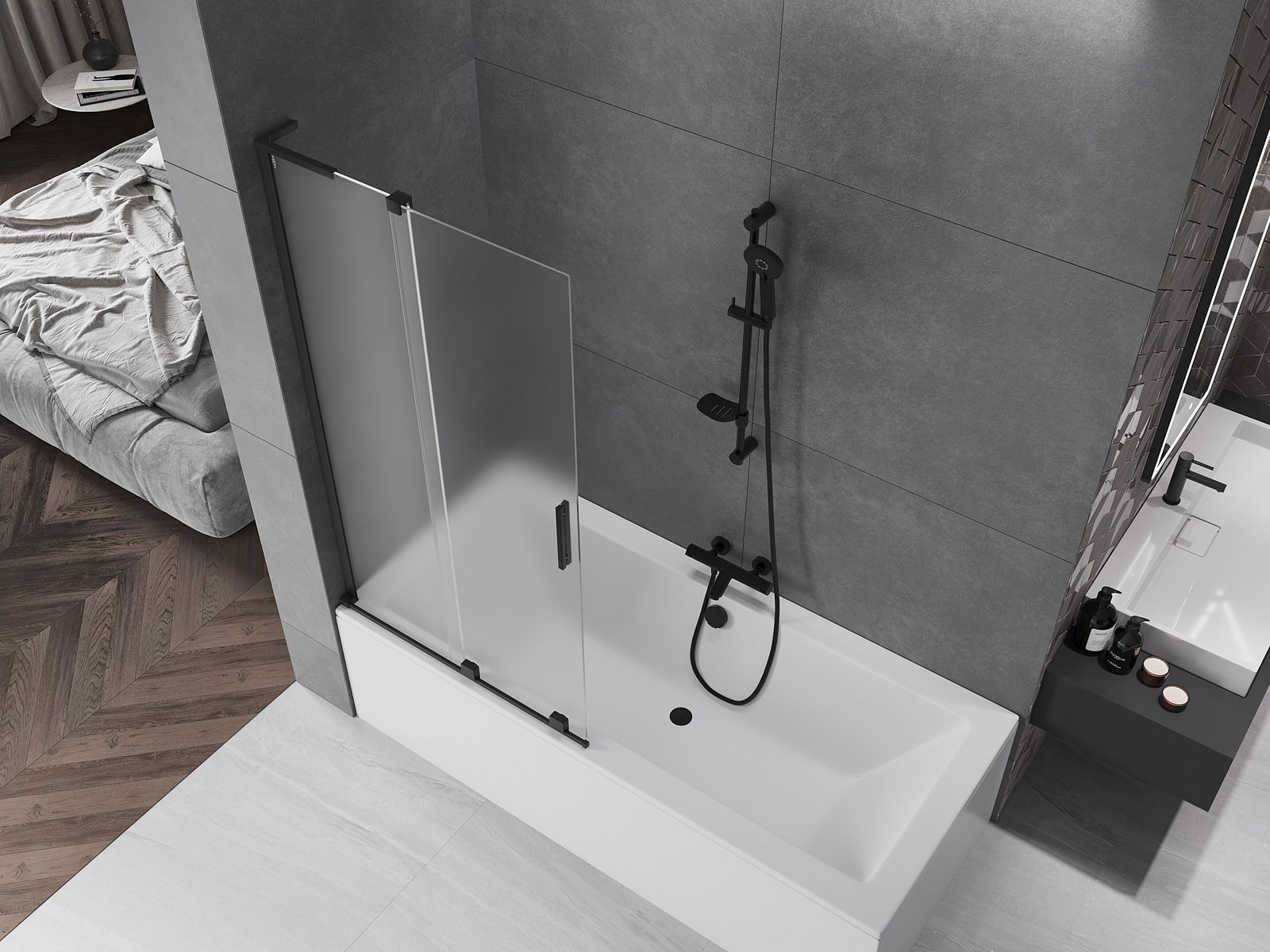 Mexen Velar L vonios sienelė, stumdomos 2-durys, 90 x 150 cm, šerkšnas, juoda - 896-090-003-31-70