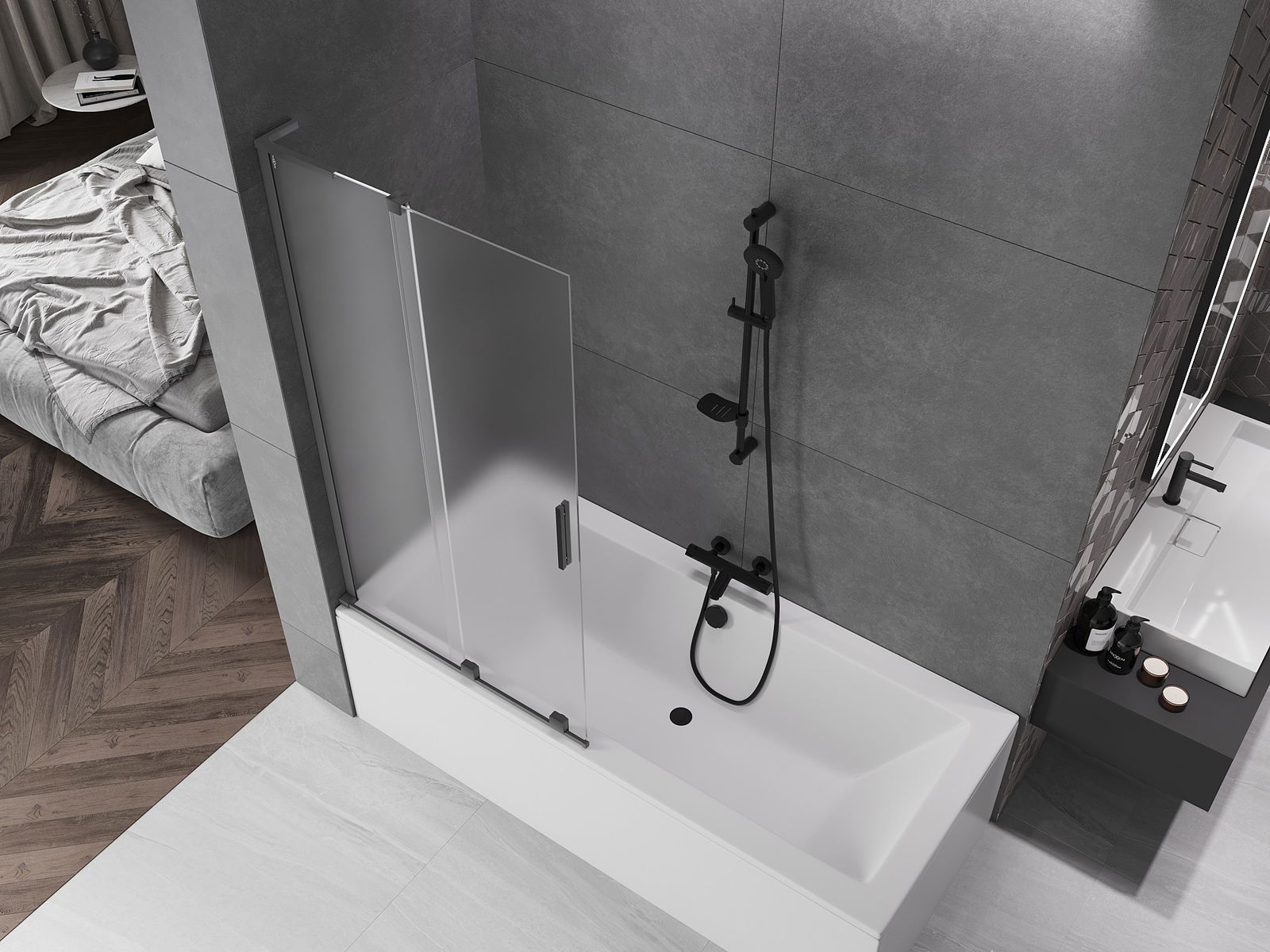 Mexen Velar L vonios ekrano 2-durų stumdomas 95 x 150 cm, matinė, gun metal - 896-095-003-31-95