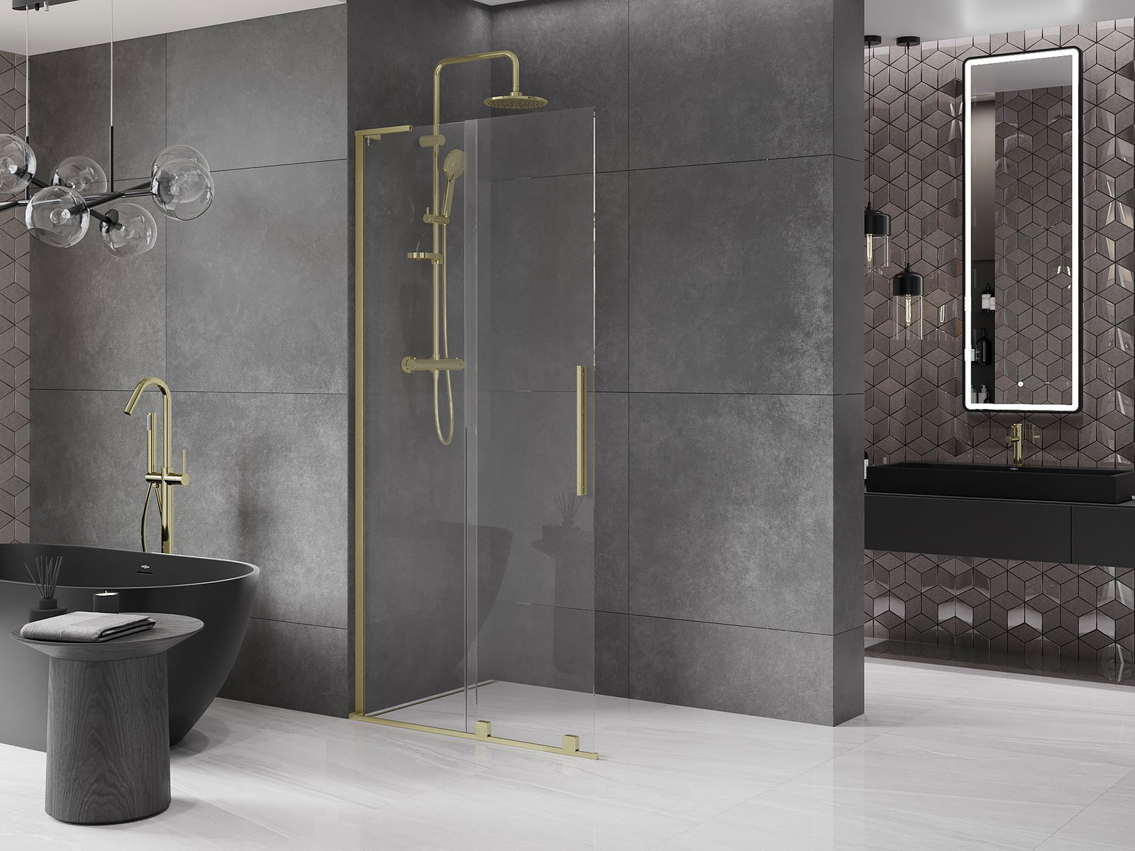 Mexen Velar L stiklinė dušo pertvara Walk-in 120 x 200 cm, skaidri 8 mm, auksinė šlifuota - 871-120-003-03-55