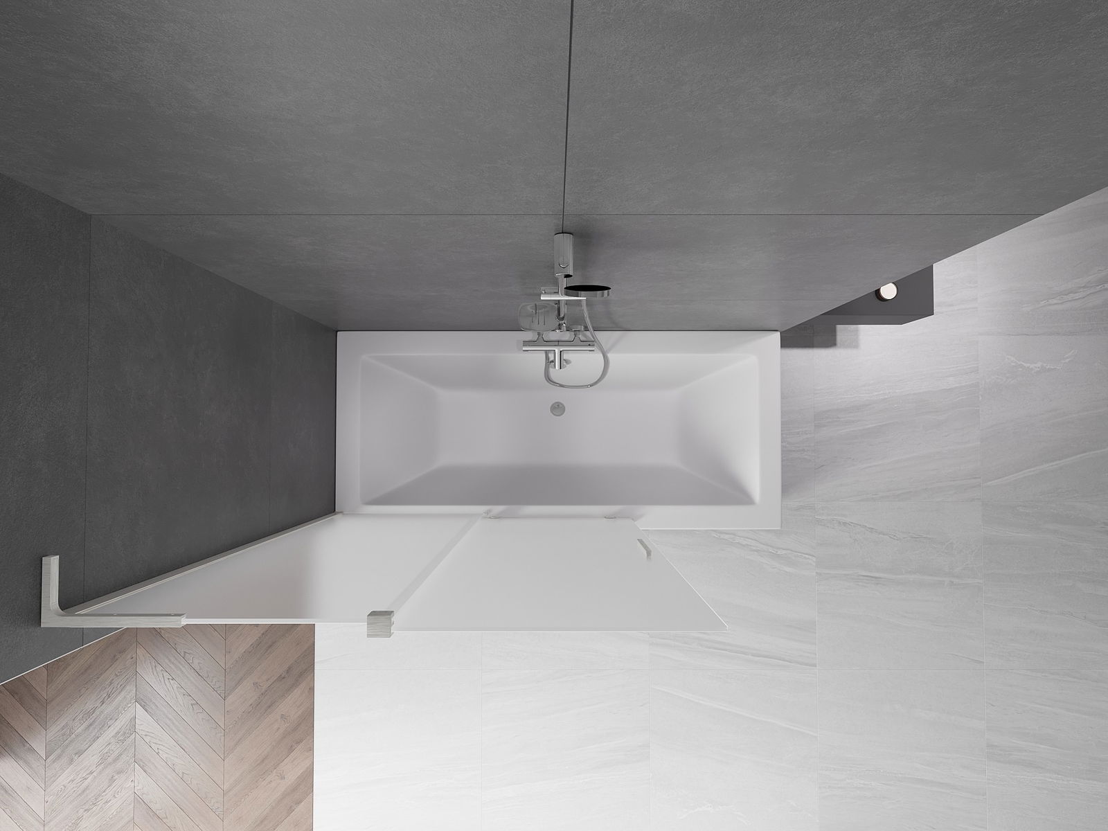 Efektyvi apsauga nuo vandens išsiliejimo maudymosi metu. Sienelė turi tarpines, kurios idealiai priglunda prie stiklo paviršiaus ir vonios krašto. Funkcionalus sprendimas, užtikrinantis saugumą ir lengvą švaros palaikymą.