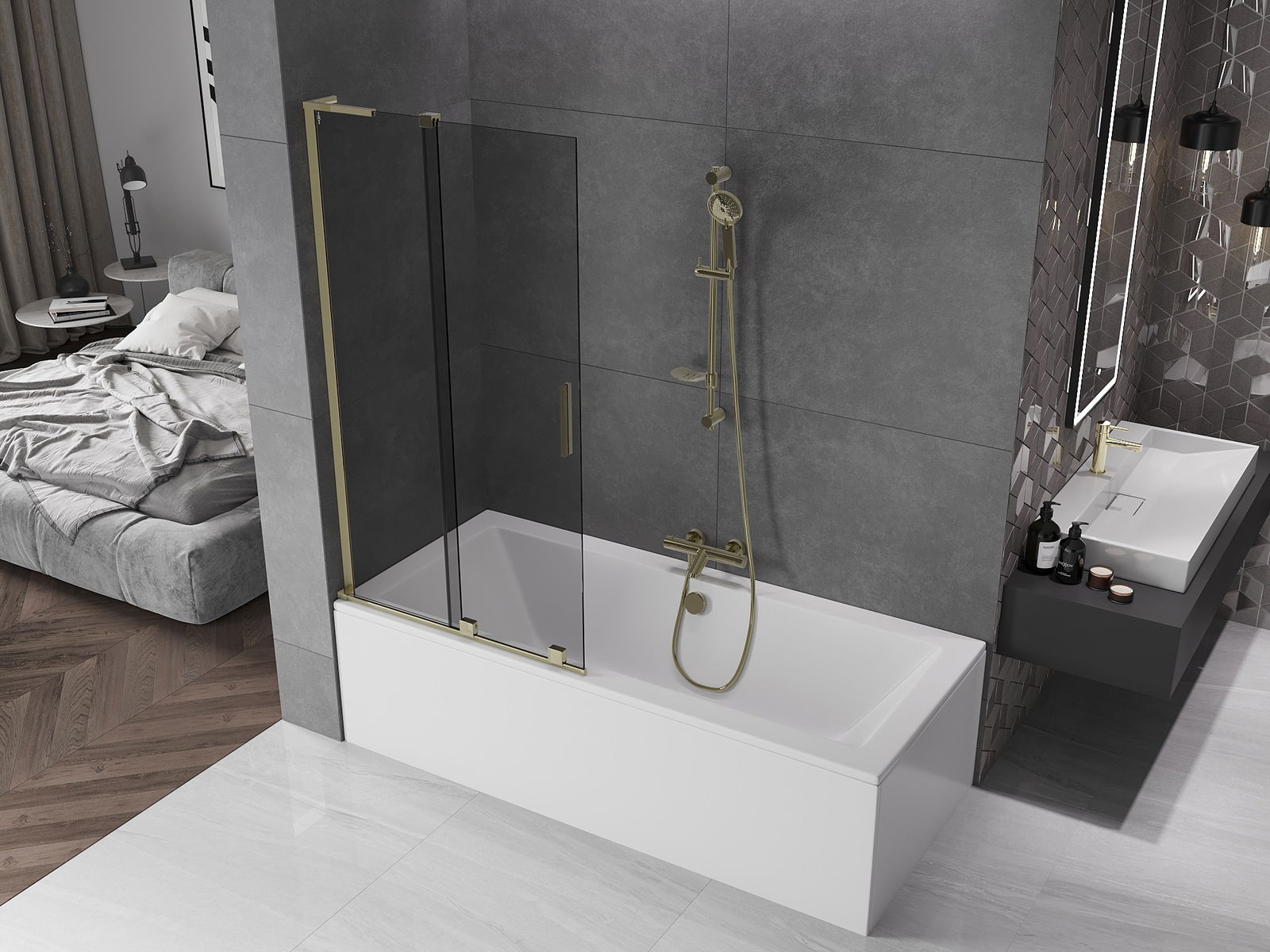 Mexen Velar L vonios pertvara 2 durų slankiojančios 95 x 150 cm, grafitas, auksinė - 896-095-003-41-50