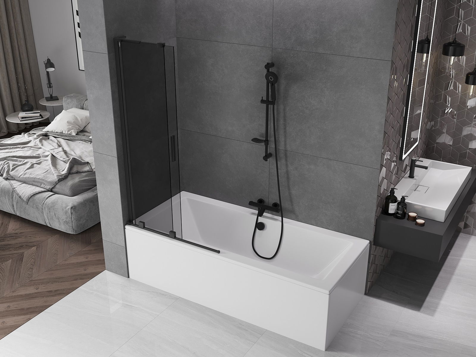 Mexen Velar L vonios užtvara, dviejų dalių stumdomas, 95 x 150 cm, grafitas, juodas - 896-095-003-41-70