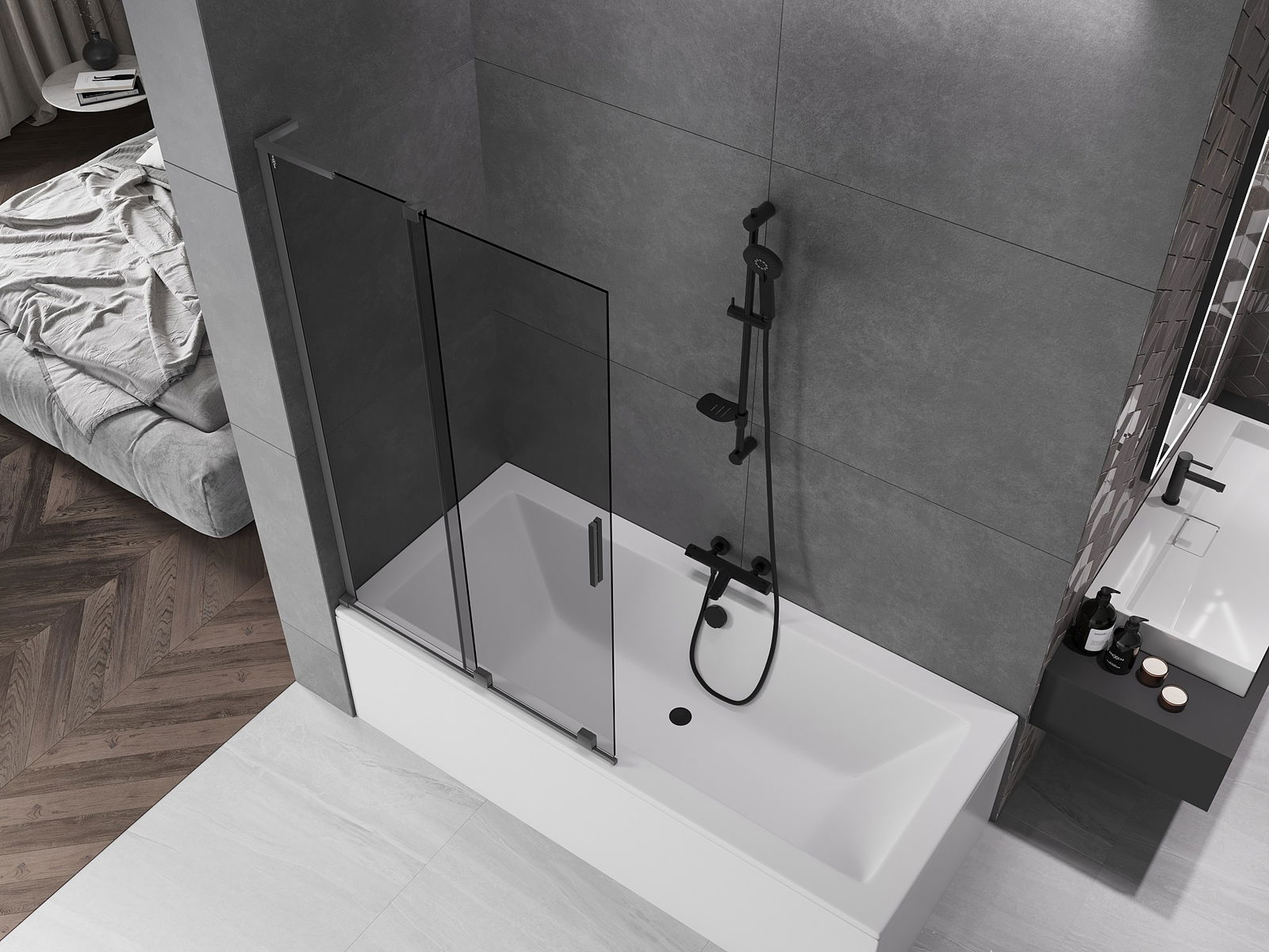 Mexen Velar L vonios ekranas 2-dalių, stumdomas 100 x 150 cm, grafitas, tamsus metalas - 896-100-003-41-95