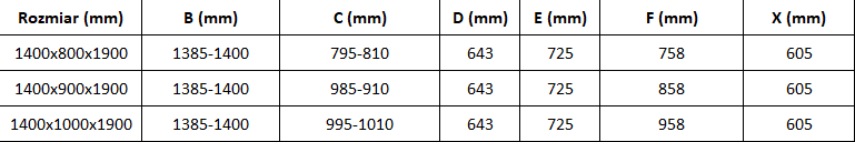 Dušo kabinos, durys ir sienelės yra standartiškai pritaikytos montuoti ant nustatytų matmenų dušo padėklų. Būtent šie matmenys nurodomi gaminio pavadinime arba aprašyme. Tačiau atkreipkite dėmesį, kad faktiniai elementų matmenys gali šiek tiek skirtis nuo vardinių verčių. Planuojant montuoti tiesiai ant grindų, rekomenduojama atidžiai patikrinti išorinius matmenis ir elementų išdėstymą pagal techninį brėžinį.