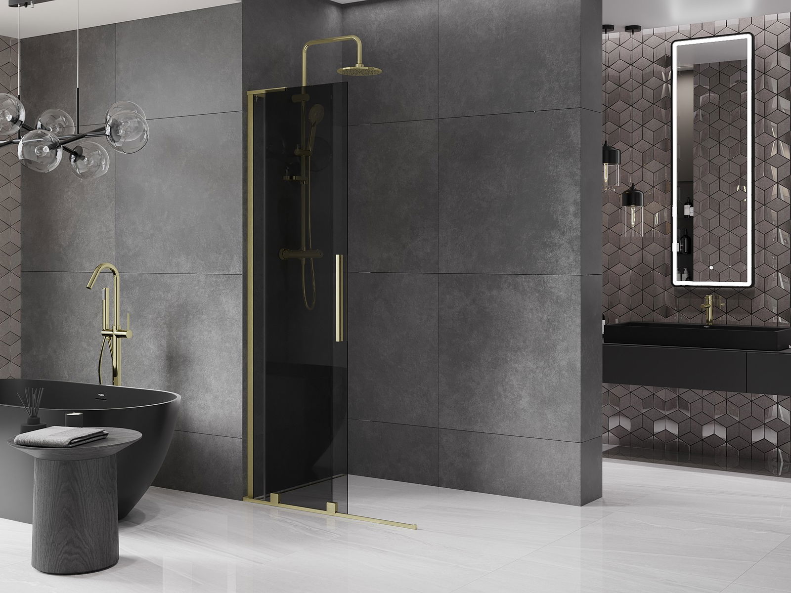Mexen Velar L slankioji dušo siena Walk-in 90 x 200 cm, grafitas 8 mm, auksinis šlifuotas - 871-090-003-43-55