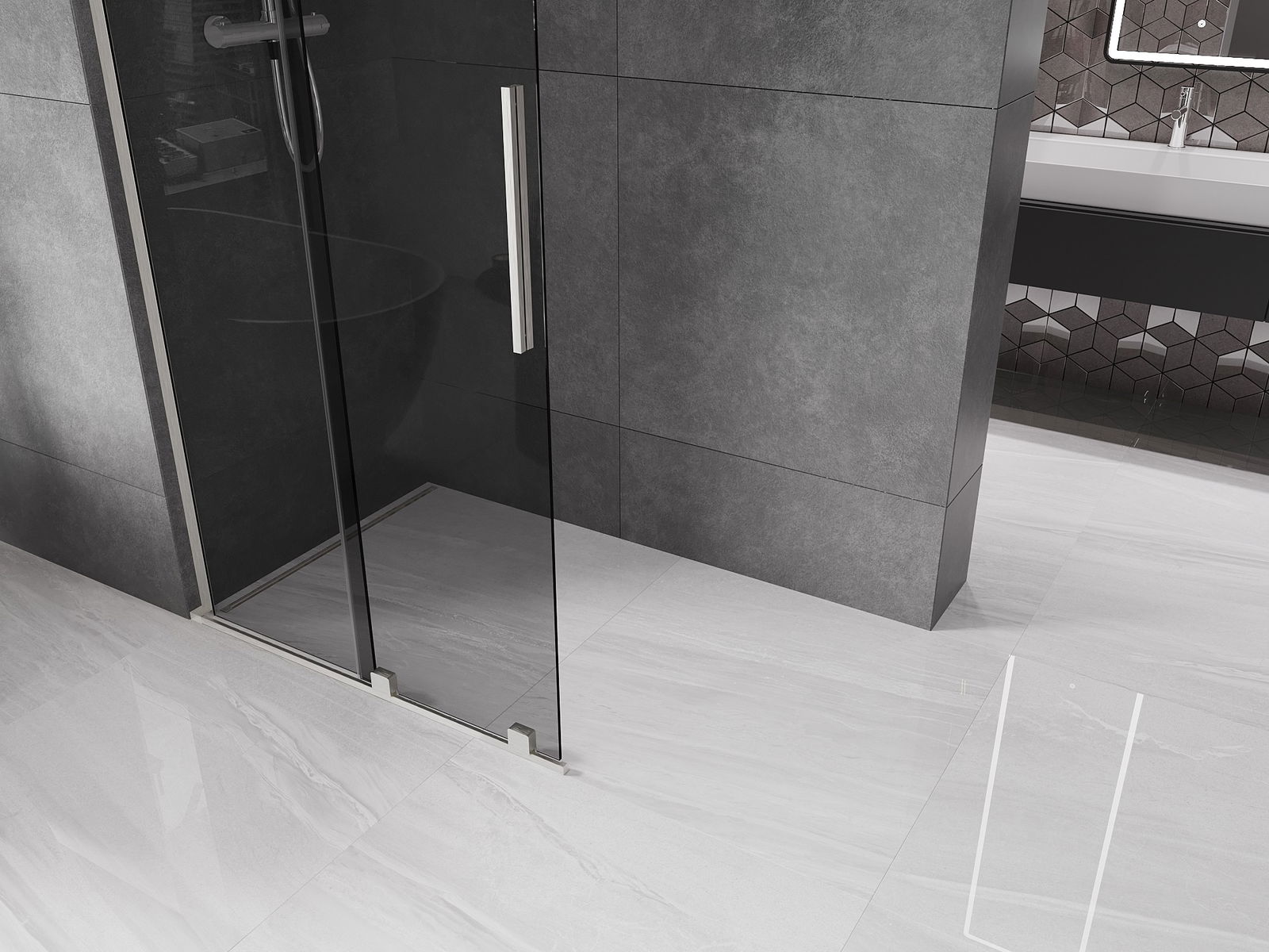 Mexen Velar L slankiojama dušo siena Walk-in 120 x 200 cm, grafitas 8 mm, šlifuotas nikelis - 871-120-003-43-97