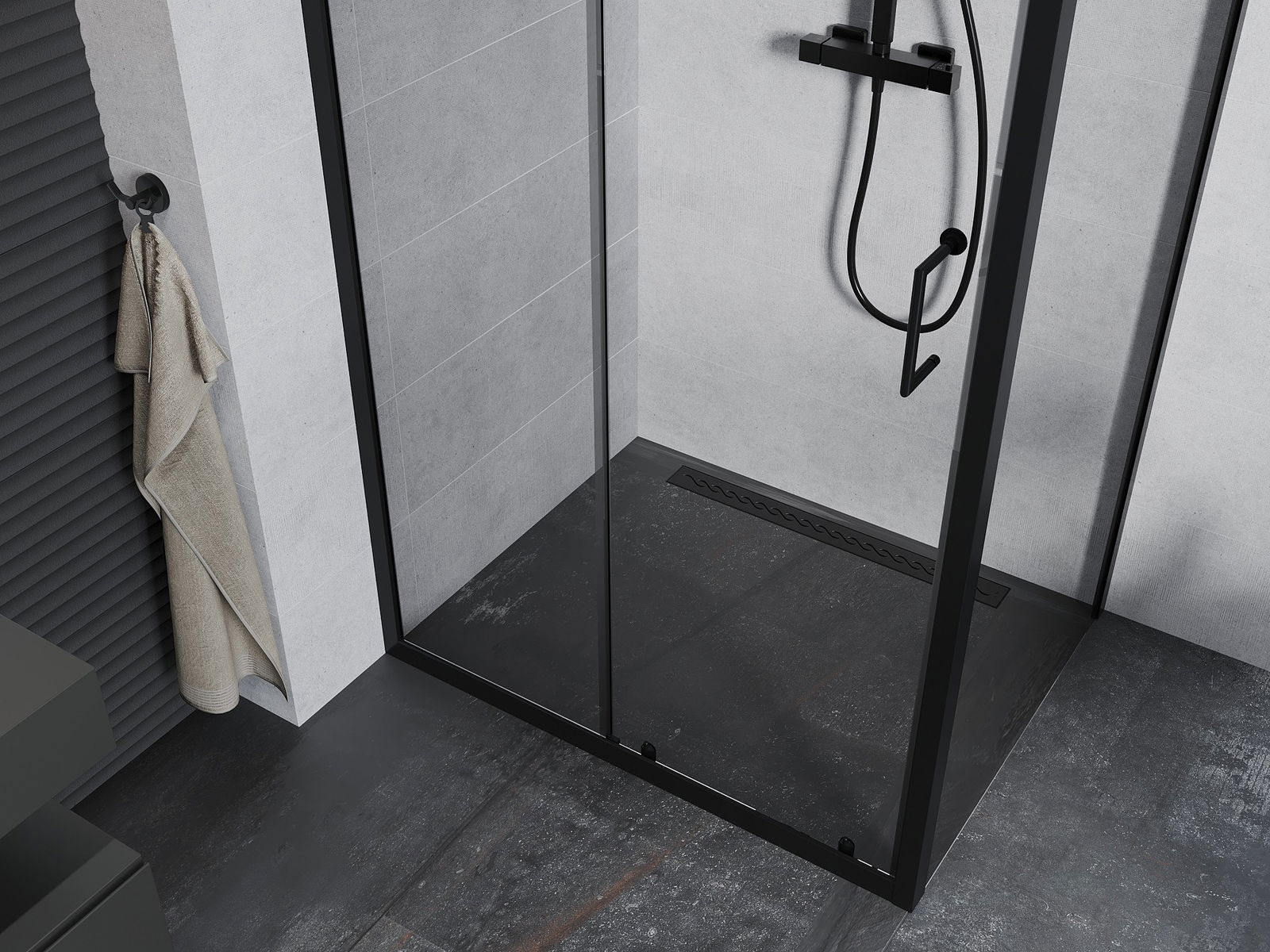 Mexen Apia stumdomas dušo kabinas 95 x 90 cm, permatomas, juodas - 840-095-090-70-00