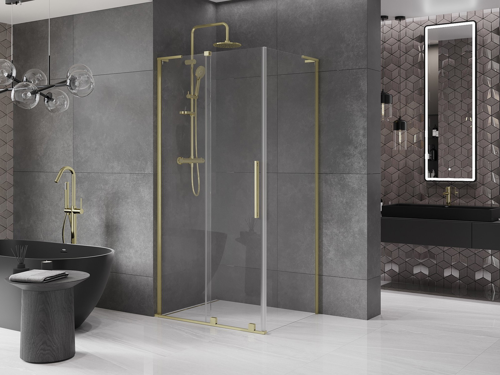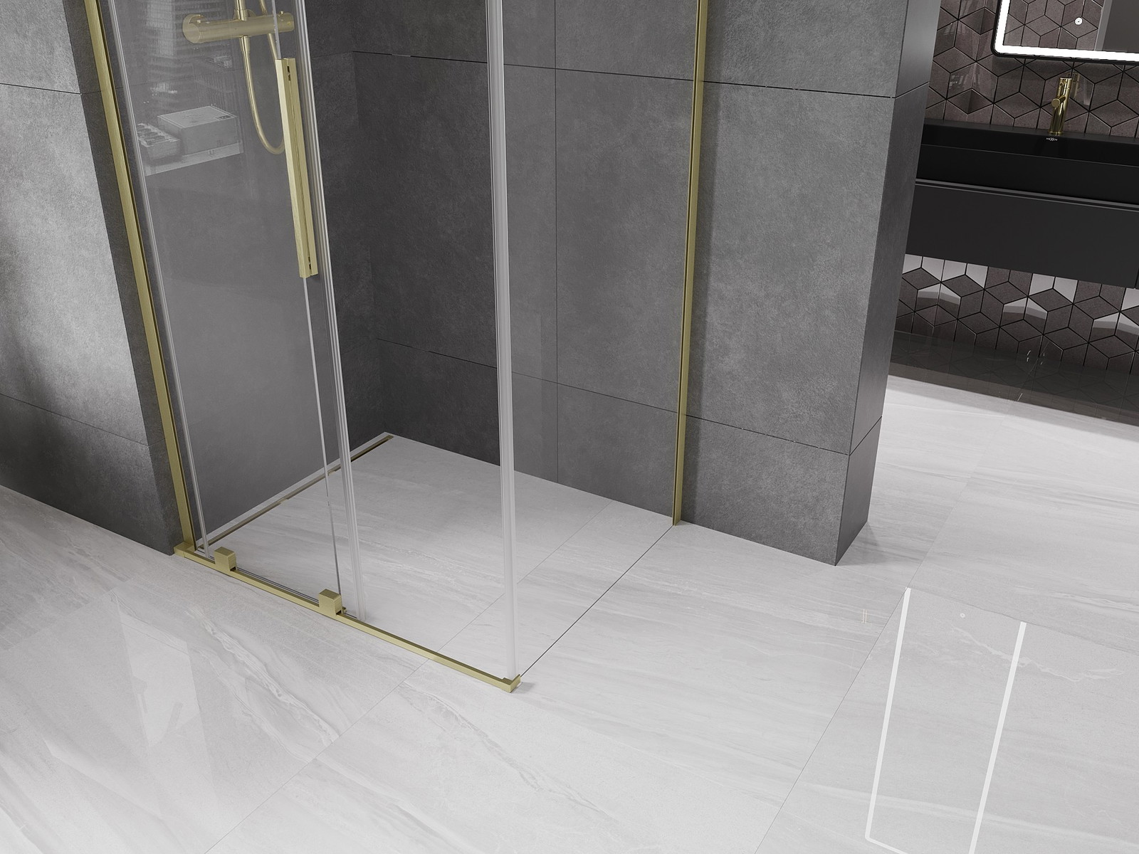 Mexen Velar L stumdoma dušo kabina 90 x 70 cm, skaidrus, šlifuotas auksas - 871-090-070-03-55