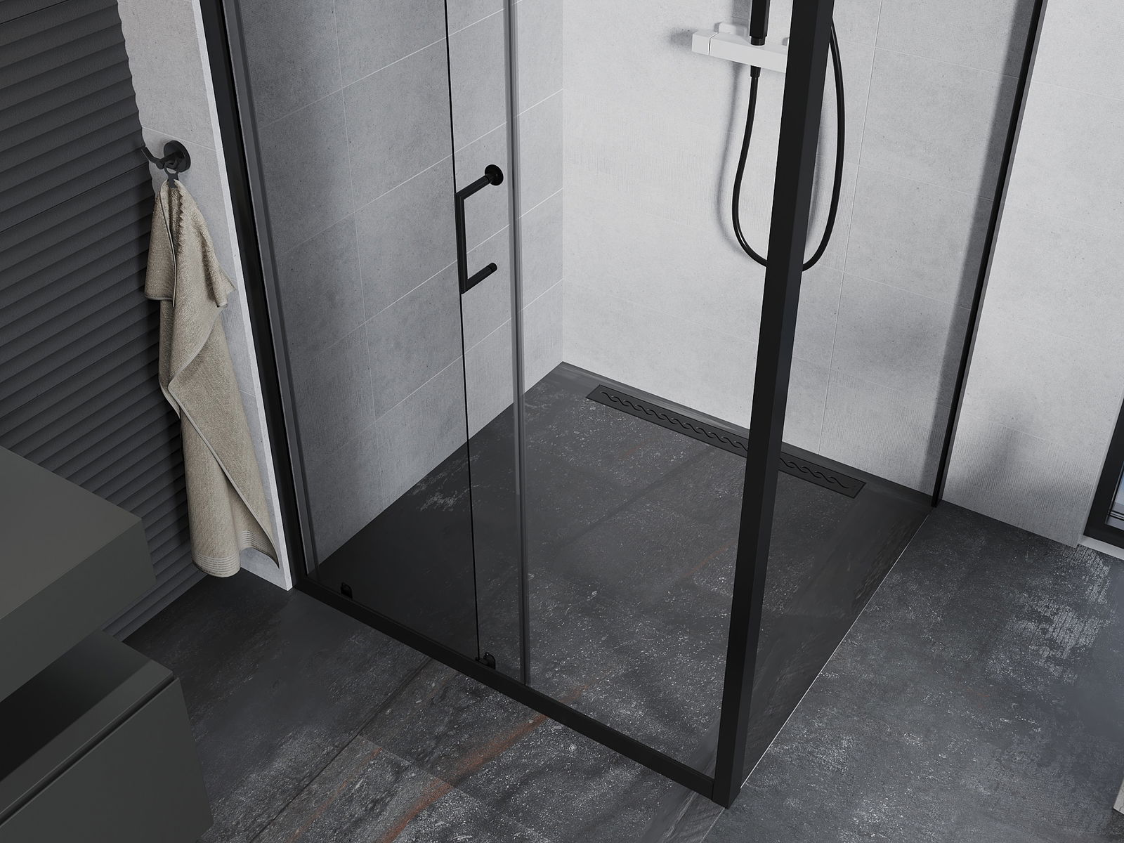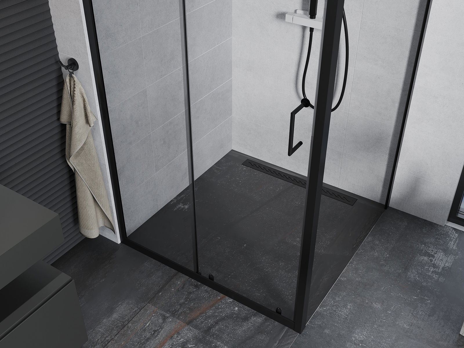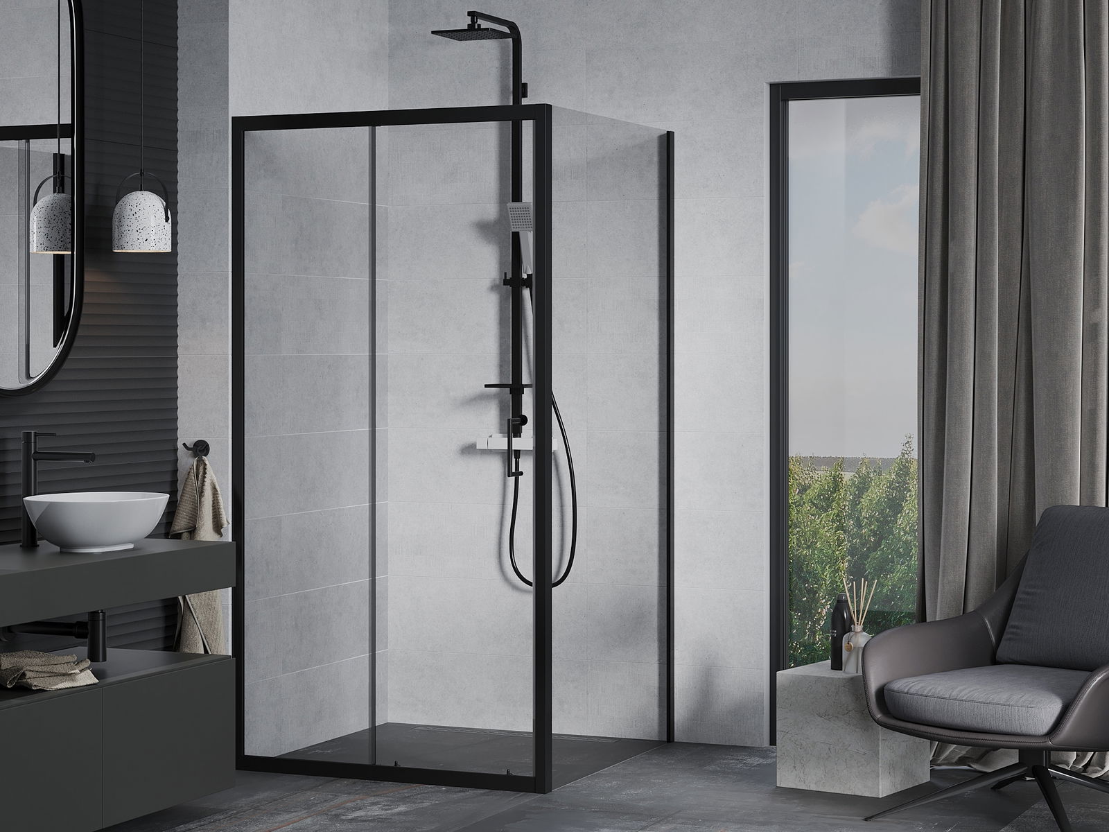 Mexen Apia stumdomas dušo kabinas 100 x 100 cm, permatomas, juodas - 840-100-100-70-00