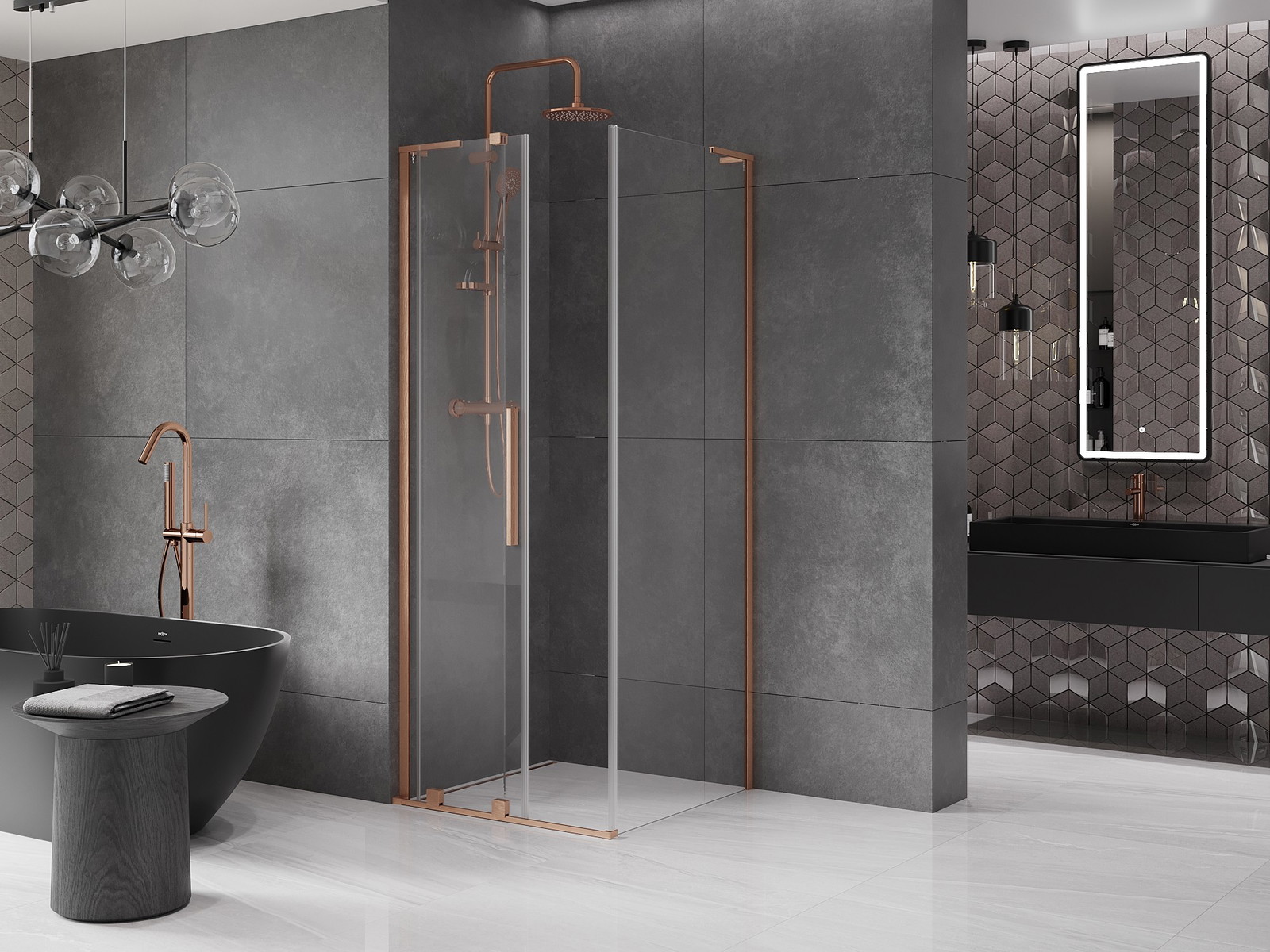 Mexen Velar L stumbras dušo kabina 100 x 100 cm, skaidri, šlifuotas varis - 871-100-100-03-65