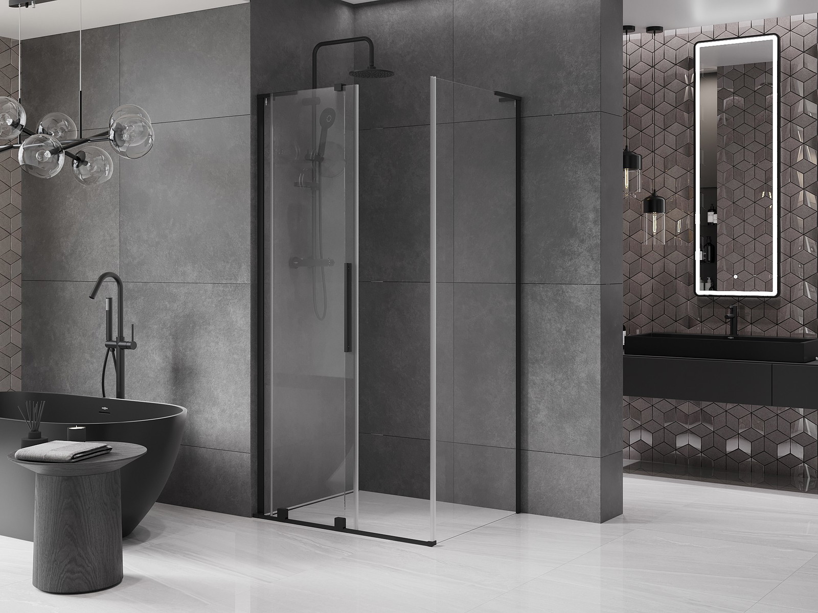 Dušo kabina Mexen Velar L yra puikus pasirinkimas bet kokiai moderniai vonios kambariai. Jos dydis 90x85 cm su stumdomomis durimis užtikrina patogų naudojimą, o 200 cm aukštis suteikia elegancijos. Dėl universalaus montavimo ir pločio reguliavimo galimybių puikiai prisitaikys prie jūsų erdvės. Produktas išsiskiria juoda apdaila ir grūdintu, skaidriu stiklu, kurio storis yra 8 mm, kas užtikrina tvirtumą ir saugumą. Aliumininiai profiliai, plieninis stabilizatorius ir nerūdijančio plieno rankenos garantuoja solidumą. Paviršius, palengvinantis valymą, ir papildomi sandarinimo elementai bei aliumininis slenkstis dar labiau padidina naudojimo komfortą. Yra galimybė montuoti ant dušo padėklo arba plytelių, o aukščiausia ritinėlių kokybė užtikrina sklandų durų atidarymą.