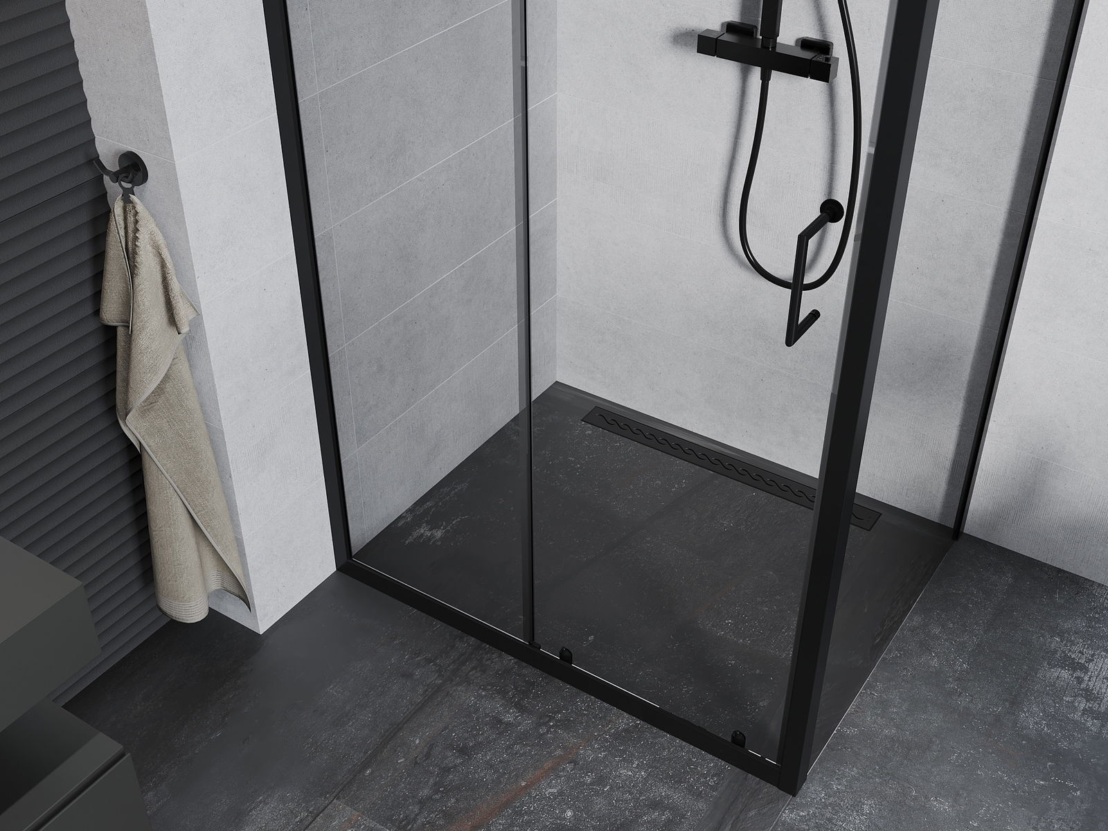 Mexen Apia slankiojančios dušo durys 140 x 70 cm, skaidrios, juodos - 840-140-070-70-00