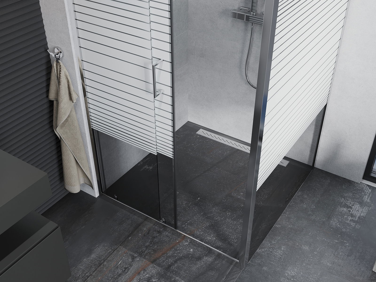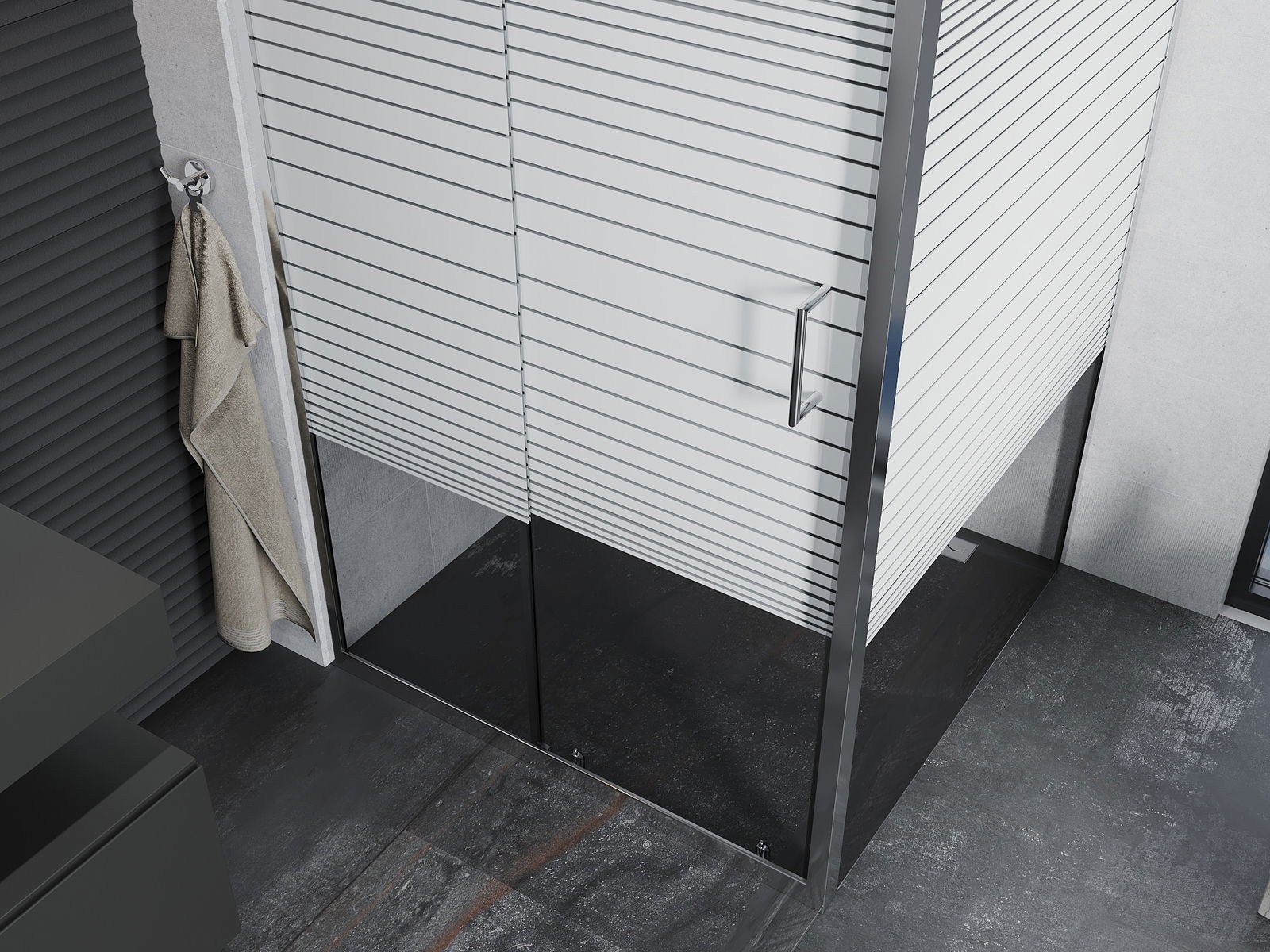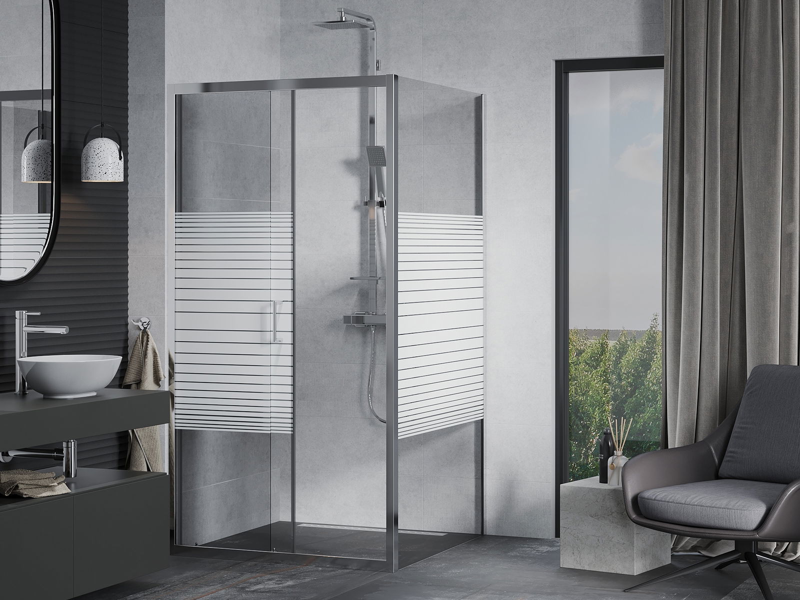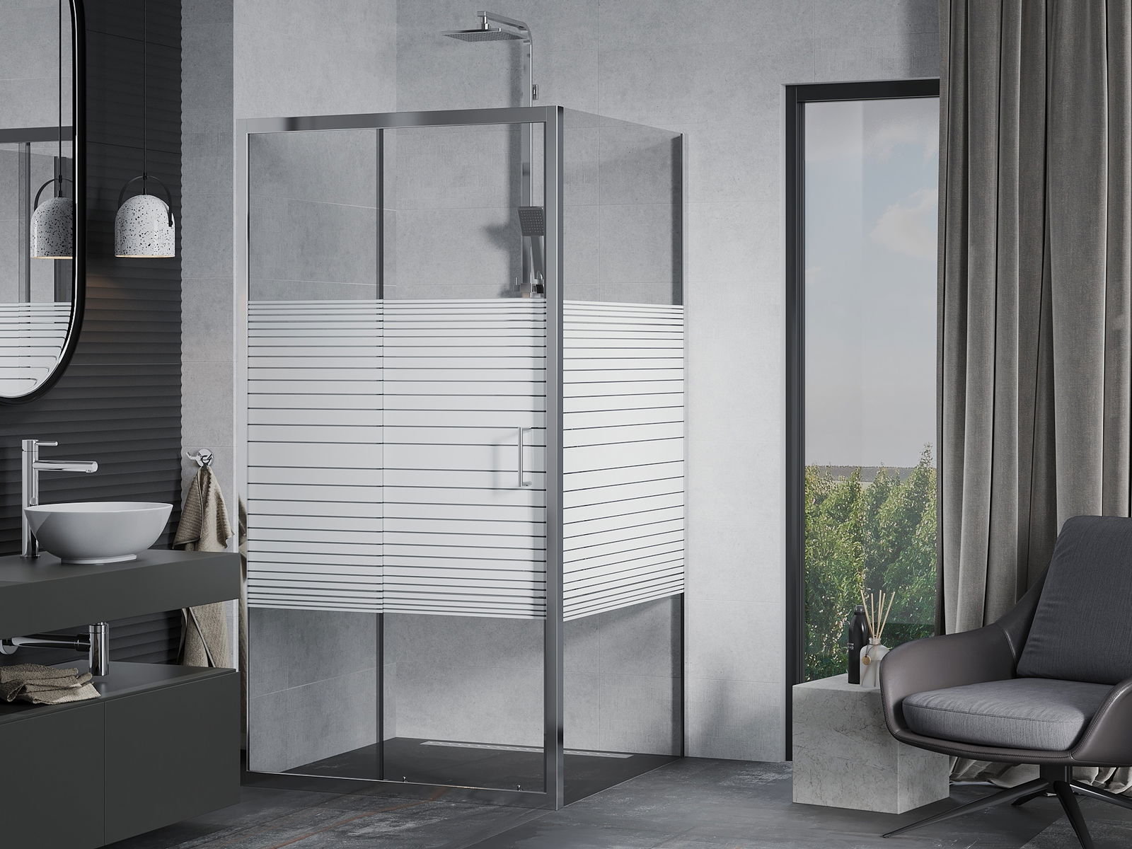 Mexen Apia stumdoma dušo kabina 90 x 90 cm, baltos juostos, chromas - 840-090-090-01-20