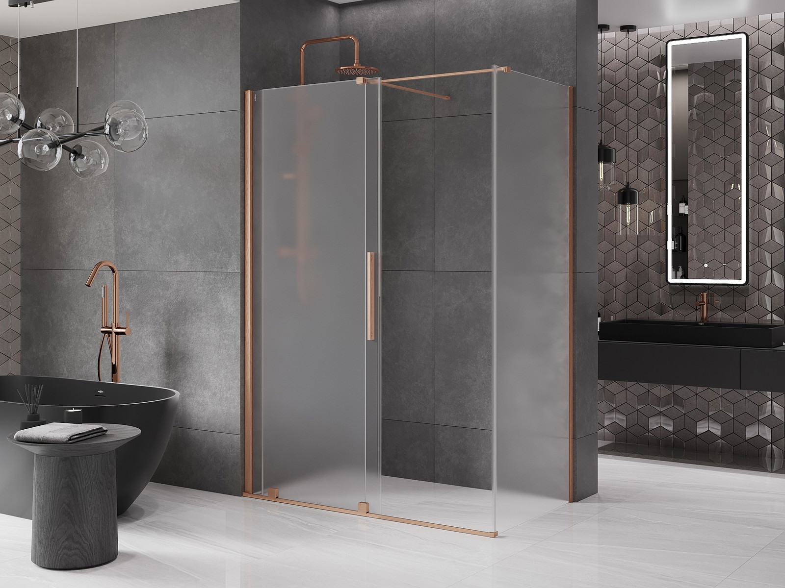 Mexen Velar stumdomasis dušo kabinas 150 x 90 cm, matinė, šlifuotas varis - 871-150-090-31-65