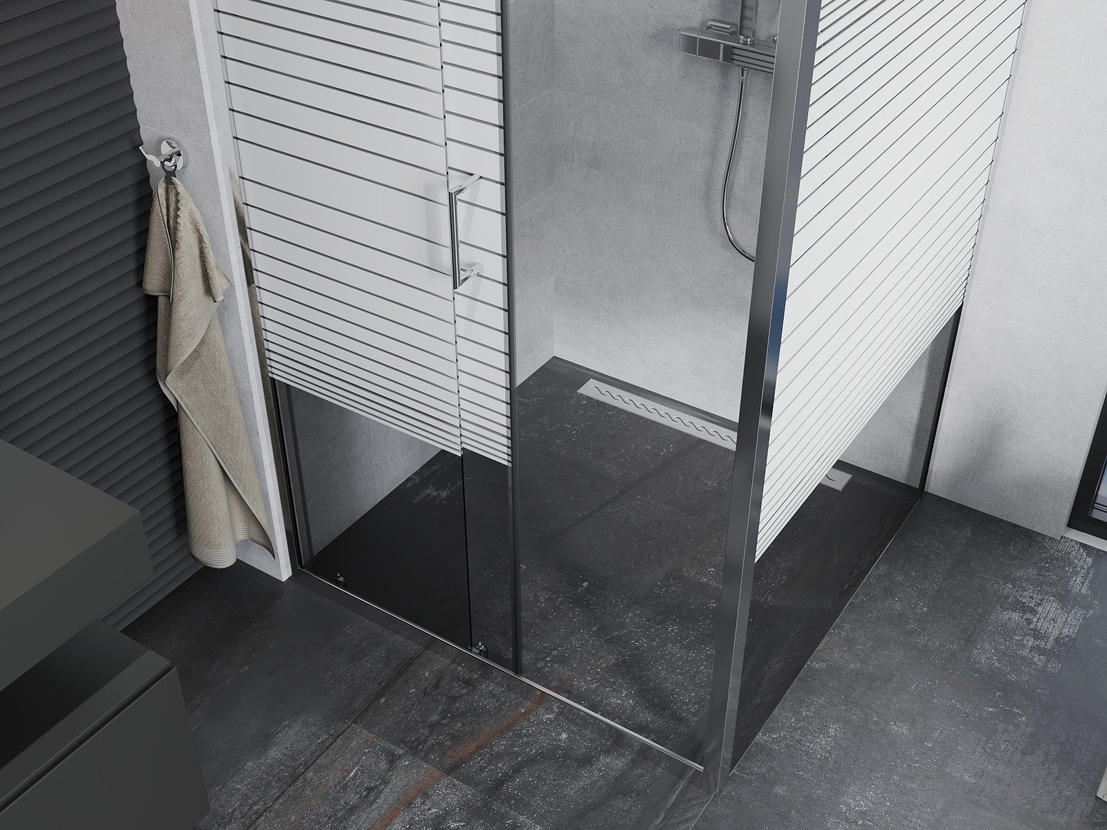Produktą, atsižvelgiant į poreikius, galima sumontuoti tiek ant dušo padėklo, tiek tiesiogiai ant grindų. Universalus montavimo būdas leidžia pritaikyti produktą įvairių tipų vonios kambariams ir erdvės konfigūracijoms.