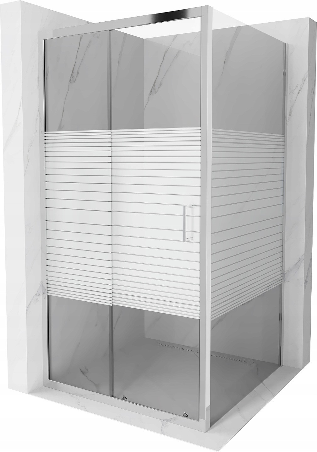 Mexen Apia stumetis stumdomas dušo kabina, balti dryžiai, chromas - 840-100-100-01-20