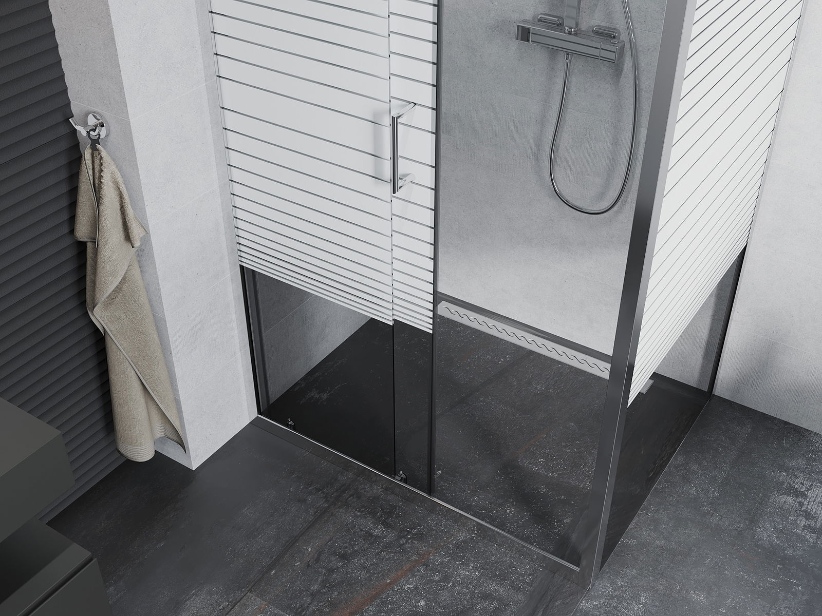 Mexen Apia stiklinė dušo kabina 110 x 90 cm, baltos juostelės, chromuota - 840-110-090-01-20